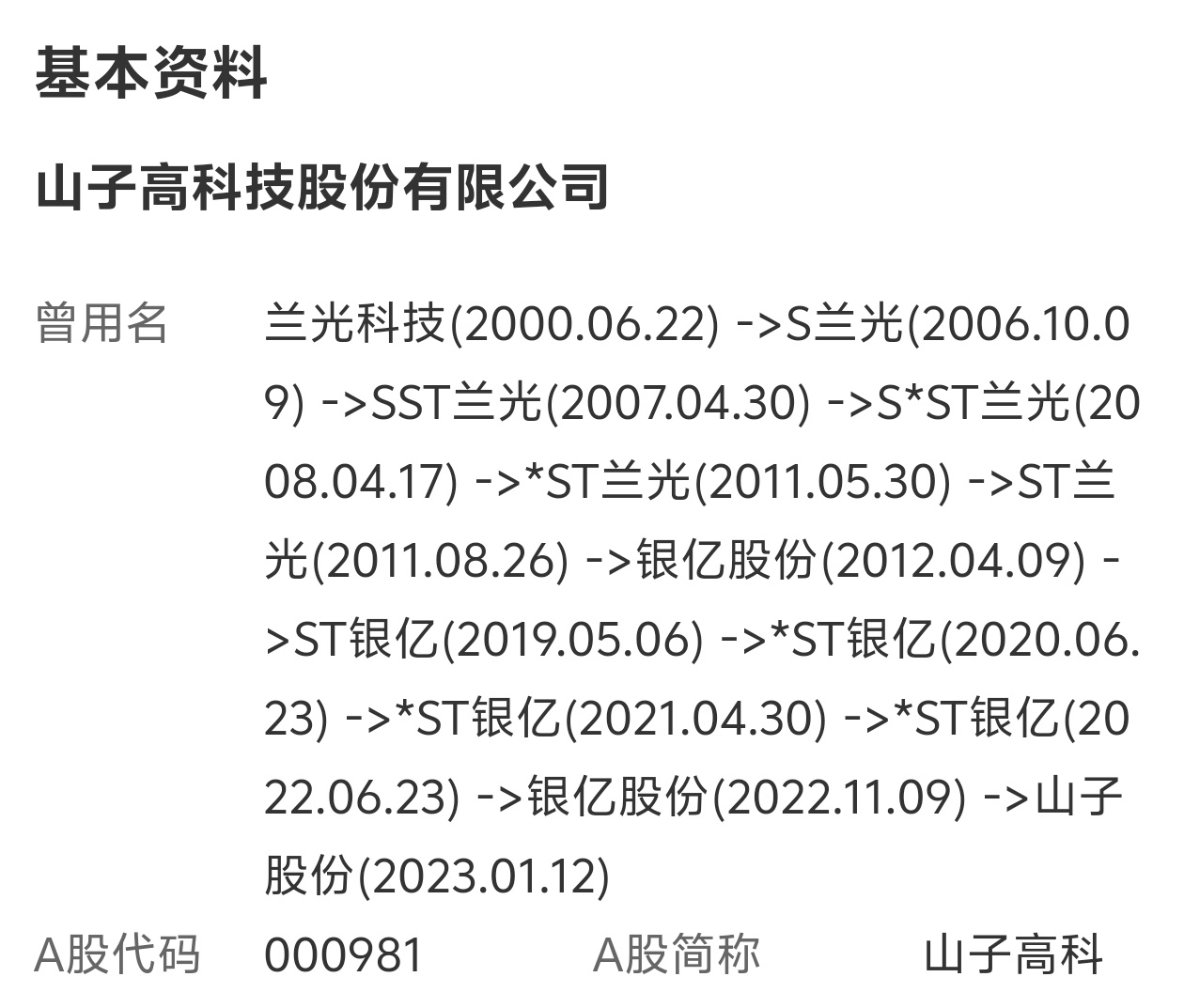 $山子高科(SZ000981)$ 为了不退市,公司改了多少次名称了