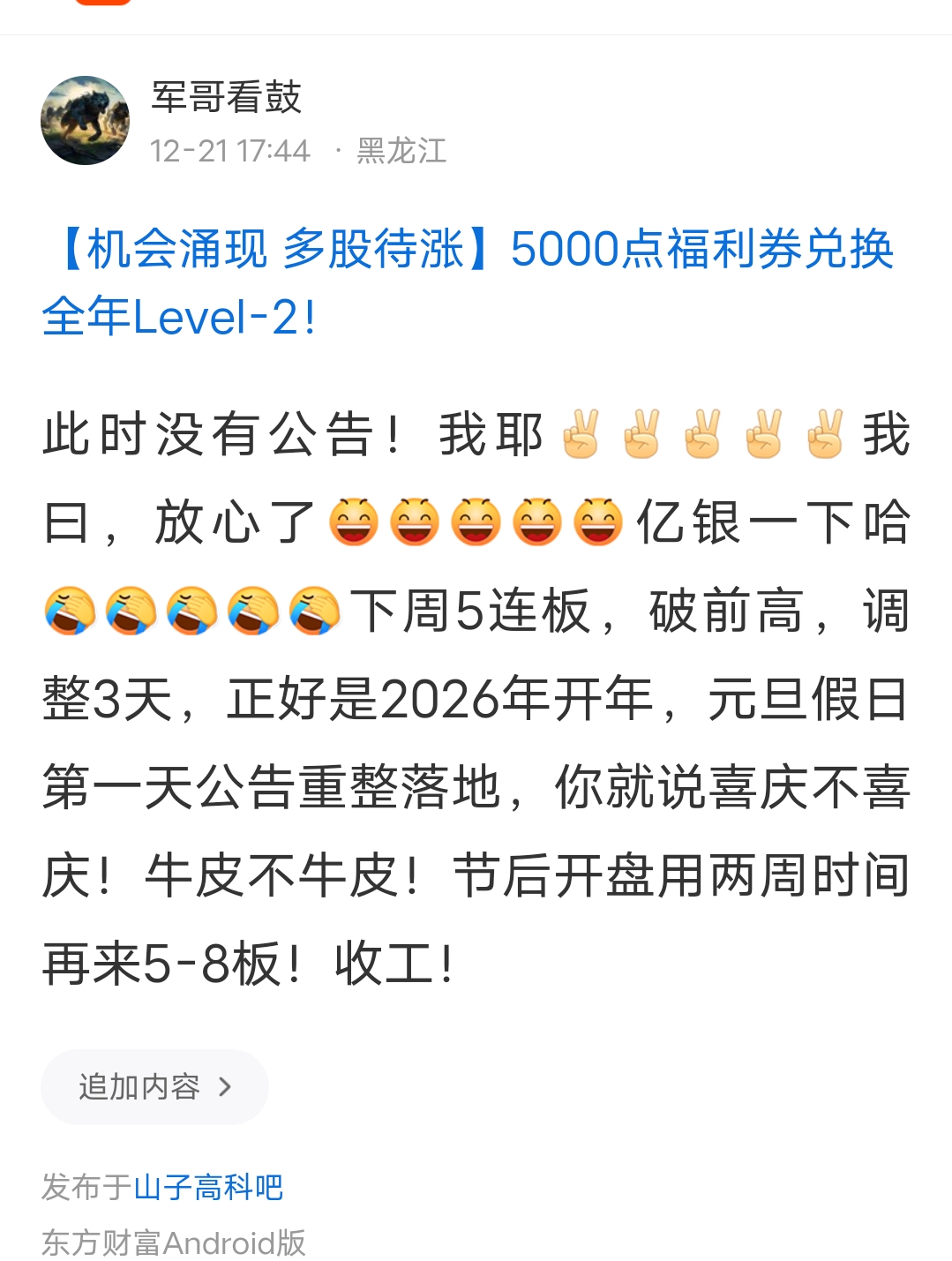 温馨提示: 1.根据《证券法》规定,禁止编造、传播虚假信息或者误导性信息,扰乱证券市场;2.用户在本社区发表的所有资料、言论等仅代表个人观点,与本网站立场无关,不对您构成任何投资建议。用户应基于自己的独立判断,自行决定证券投资并承担相应风险。《东方财富社区管理规定》