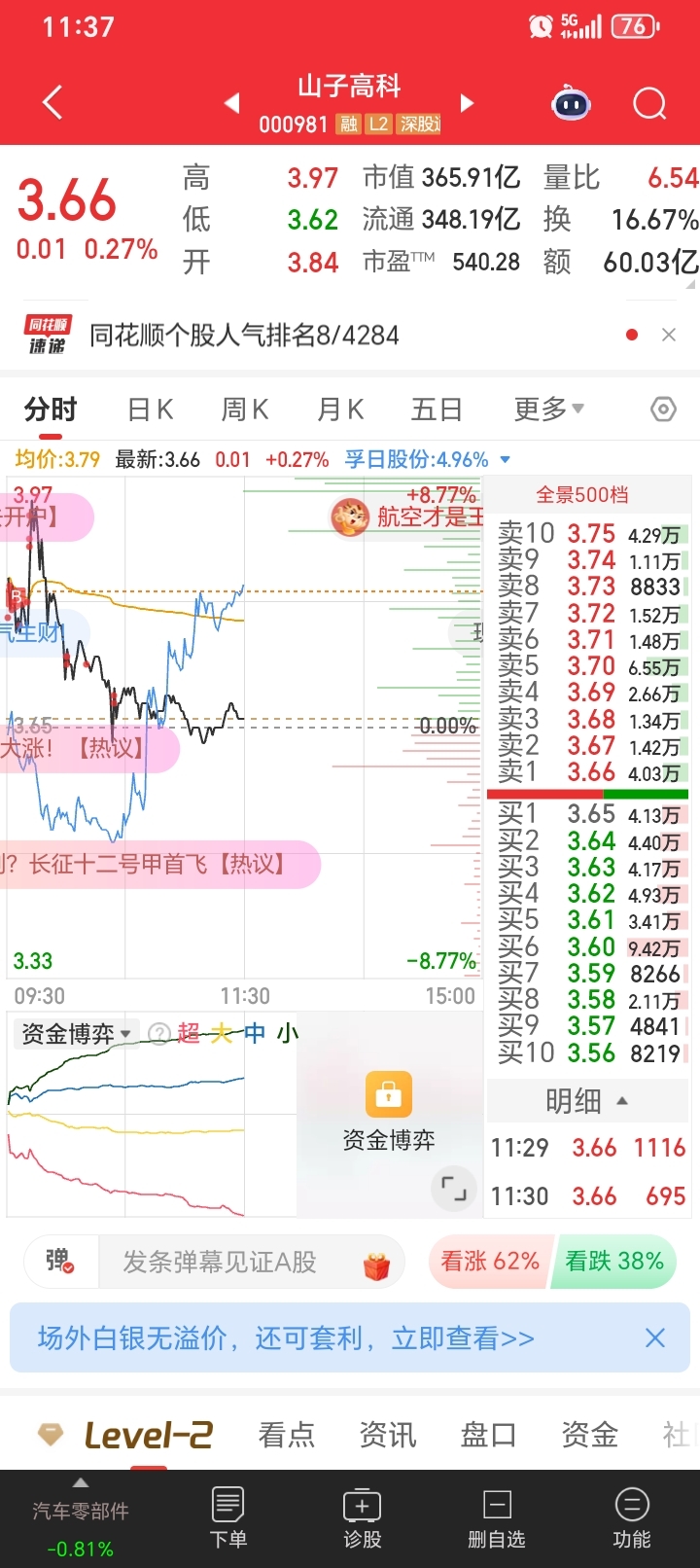 $山子高科(SZ000981)$ 兄弟们我这次打满了,目前40000股昨天没买后悔了,今天全部打满,我去楼上一下