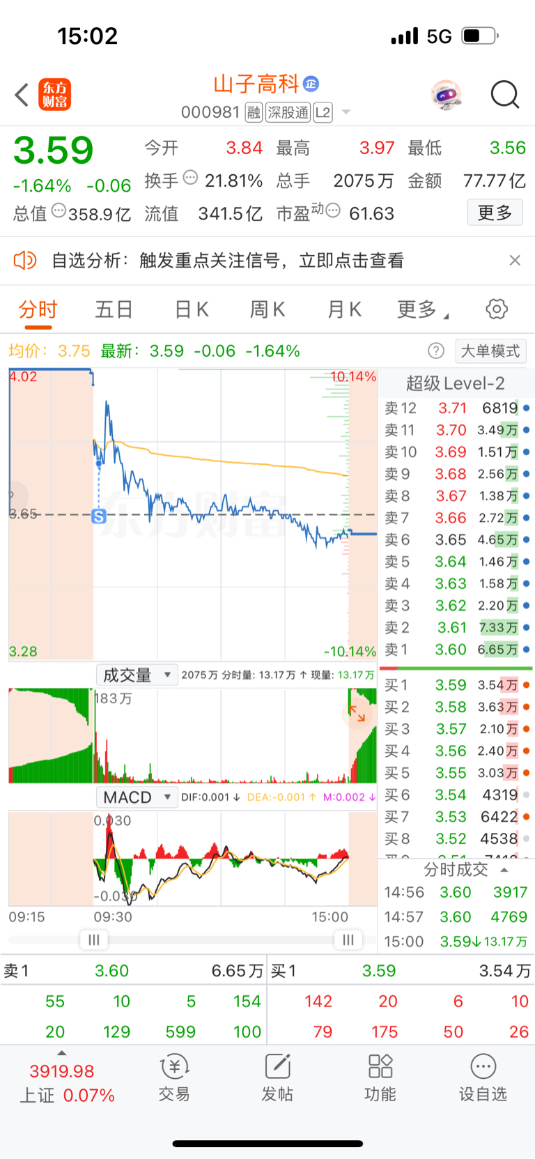 $山子高科(SZ000981)$ 没卖到好点位,但不错了,利润到手,只余一手了