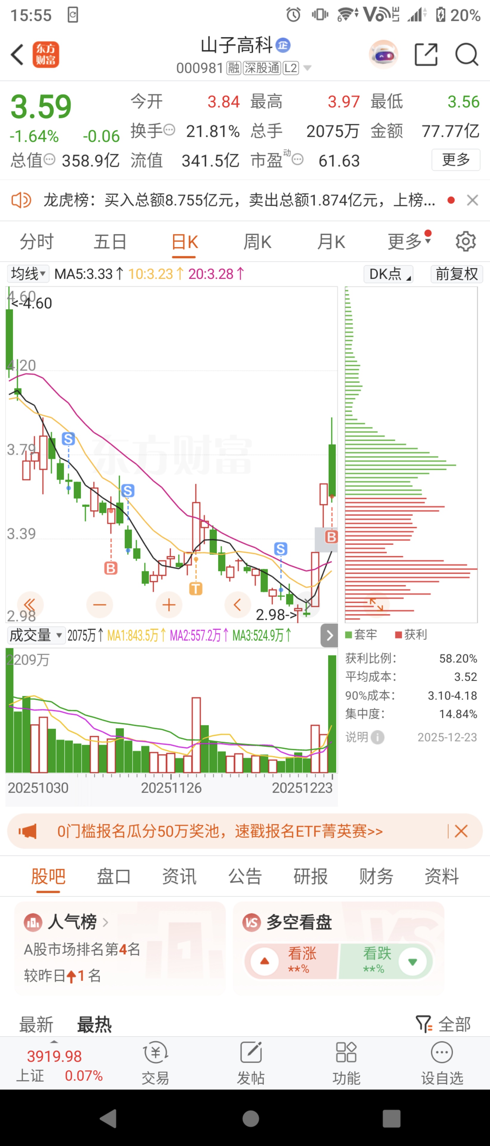 $山子高科(SZ000981)$ 3.02,3.15-18,3.32我不买,偏要现在3.59我才买,上升通道我不买,偏要现在下跌趋势了我才买,为什么?
