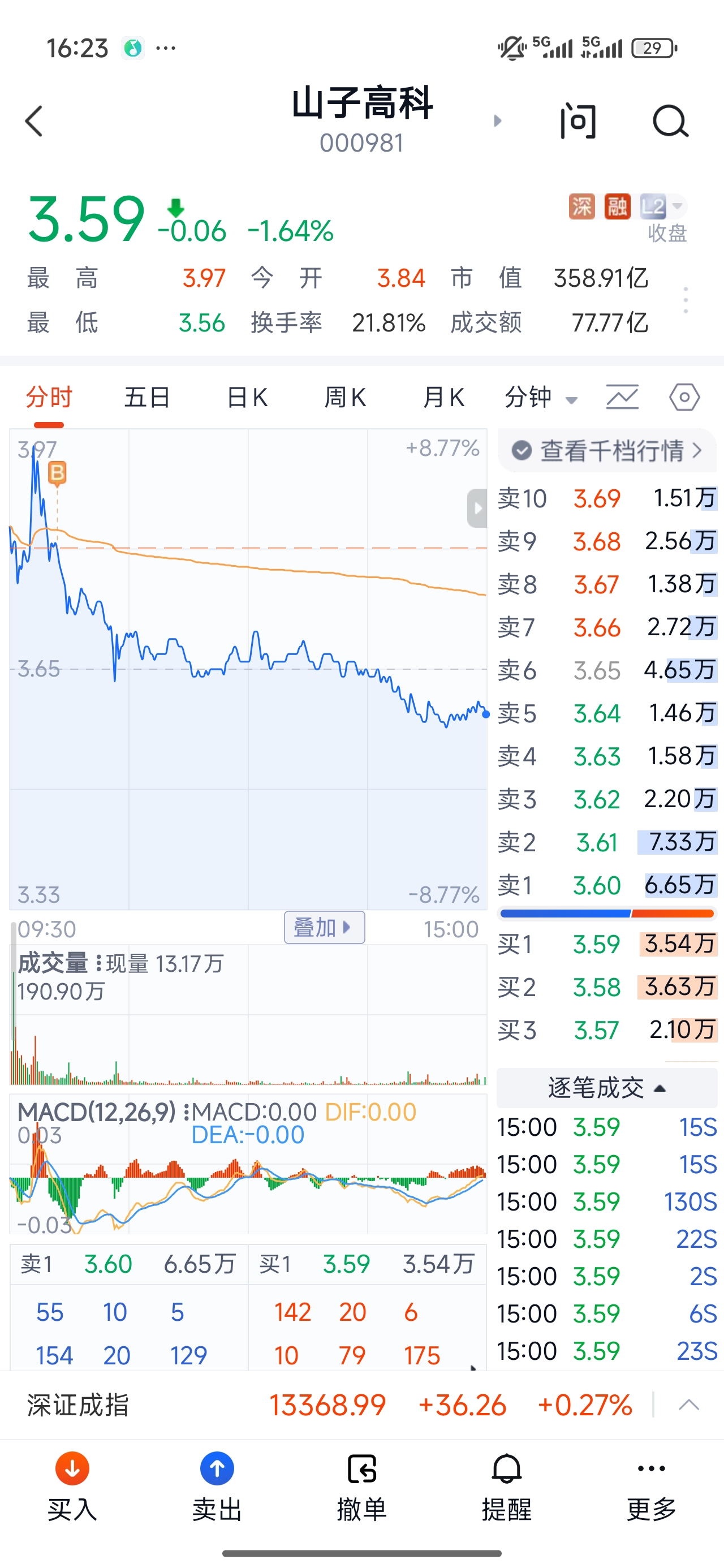 $山子高科(SZ000981)$ 完犊子,我的80手给买崩了