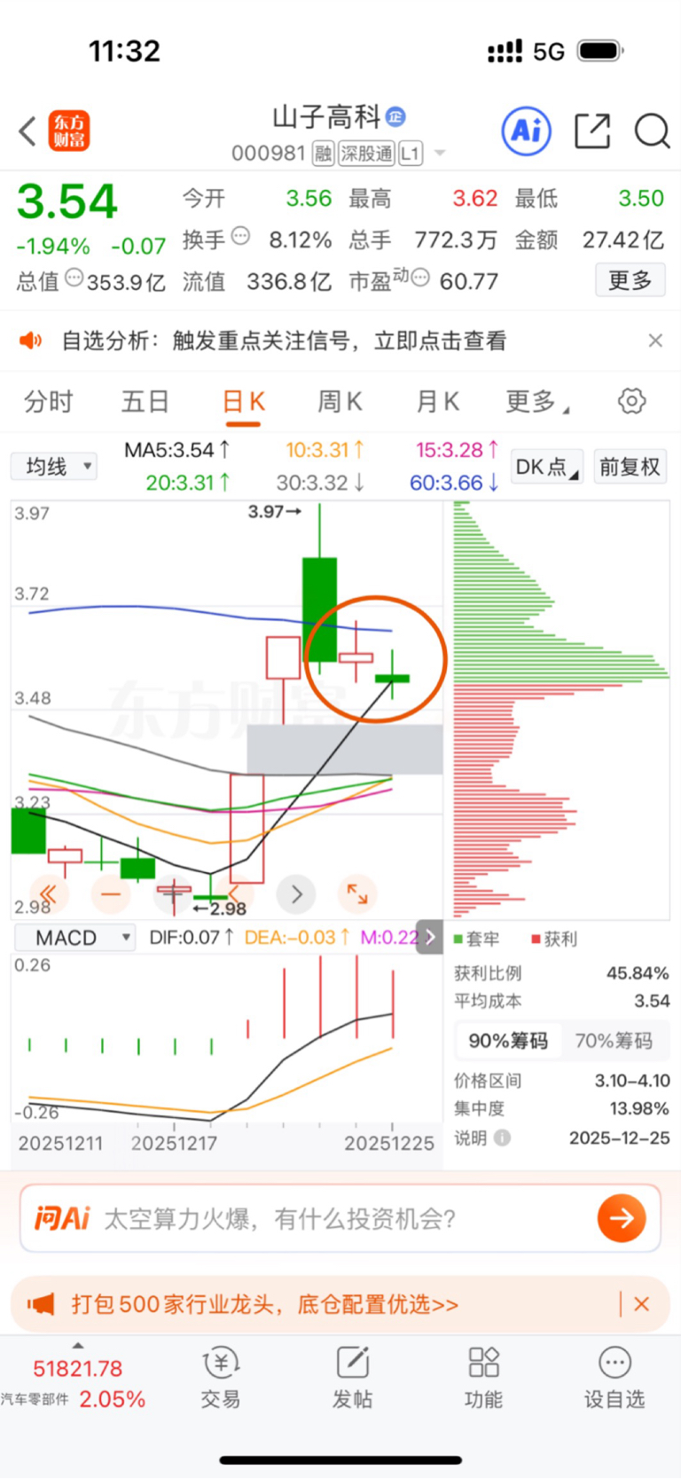 山子高科双十字星(缩量),明天很期待!
