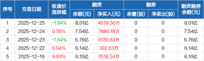 山子高科:连续6日融资净买入累计2.36亿元(12-25)