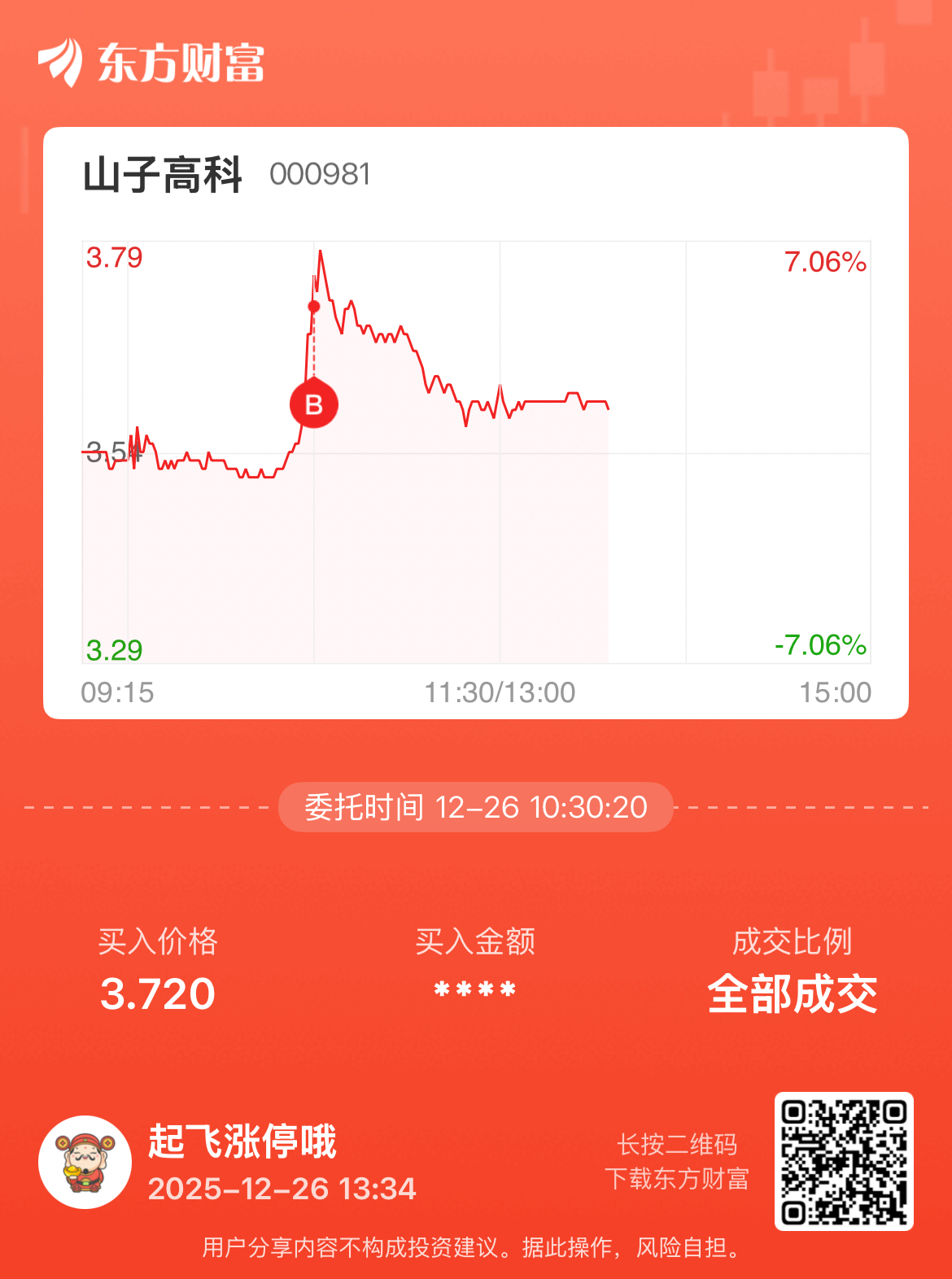 温馨提示: 1.根据《证券法》规定,禁止编造、传播虚假信息或者误导性信息,扰乱证券市场;2.用户在本社区发表的所有资料、言论等仅代表个人观点,与本网站立场无关,不对您构成任何投资建议。用户应基于自己的独立判断,自行决定证券投资并承担相应风险。《东方财富社区管理规定》