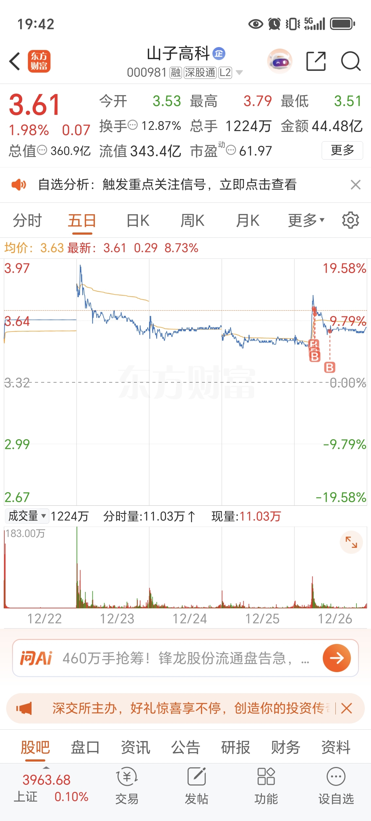 $山子高科(SZ000981)$ 大哥周一让我少亏点,我割