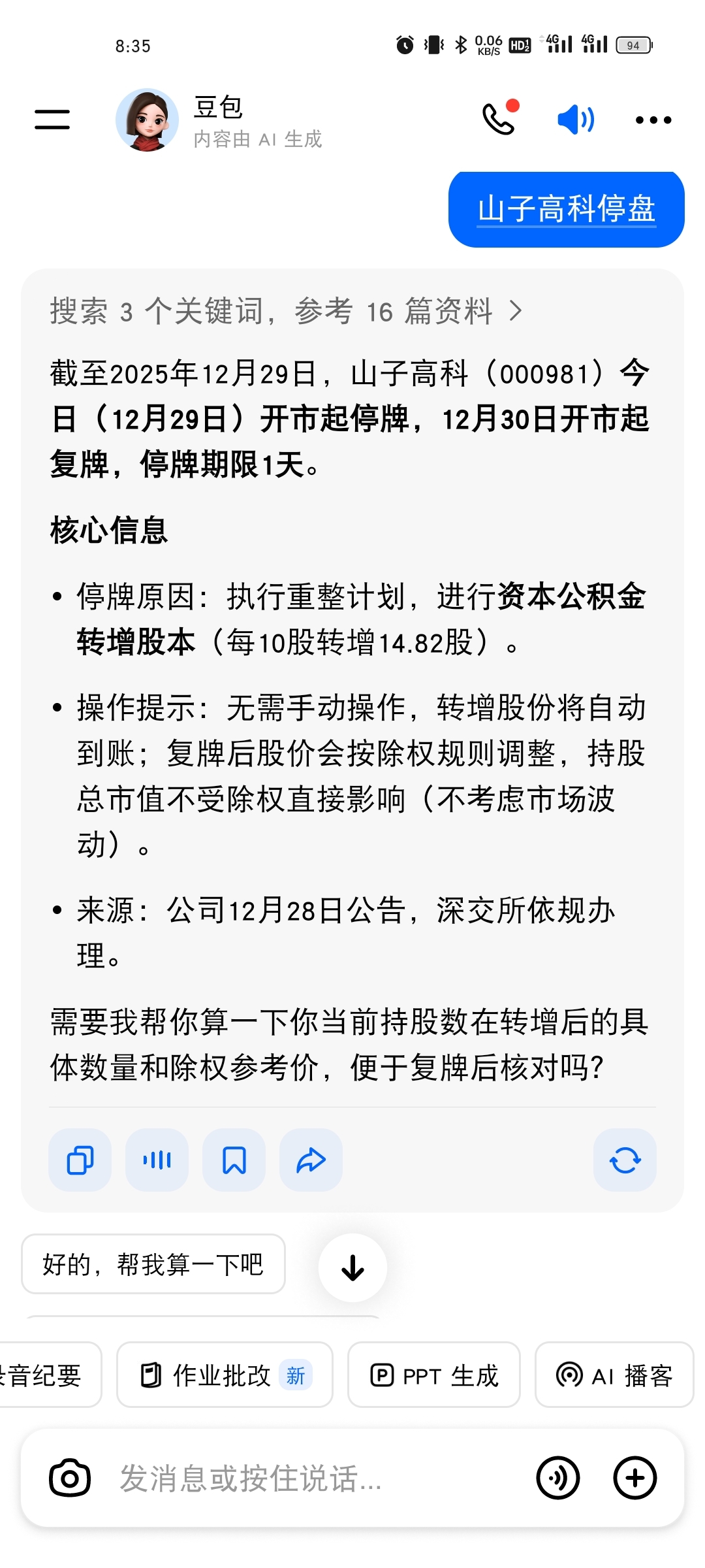 $山子高科(SZ000981)$ 豆包是被骗了吗?
