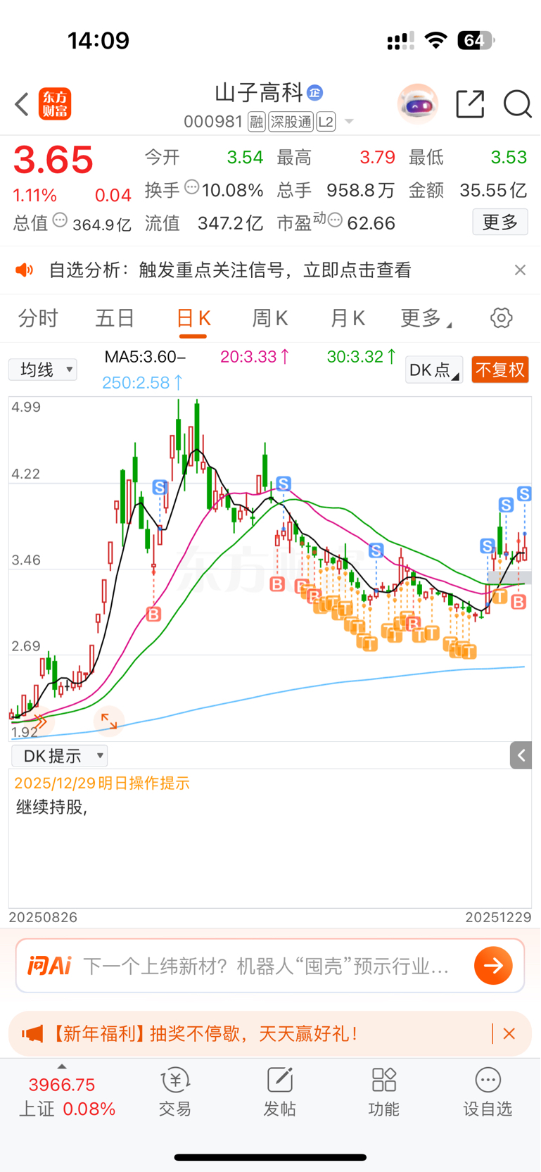 $山子高科(SZ000981)$ 这太不容易了。清仓...跨年买点逆回购先。