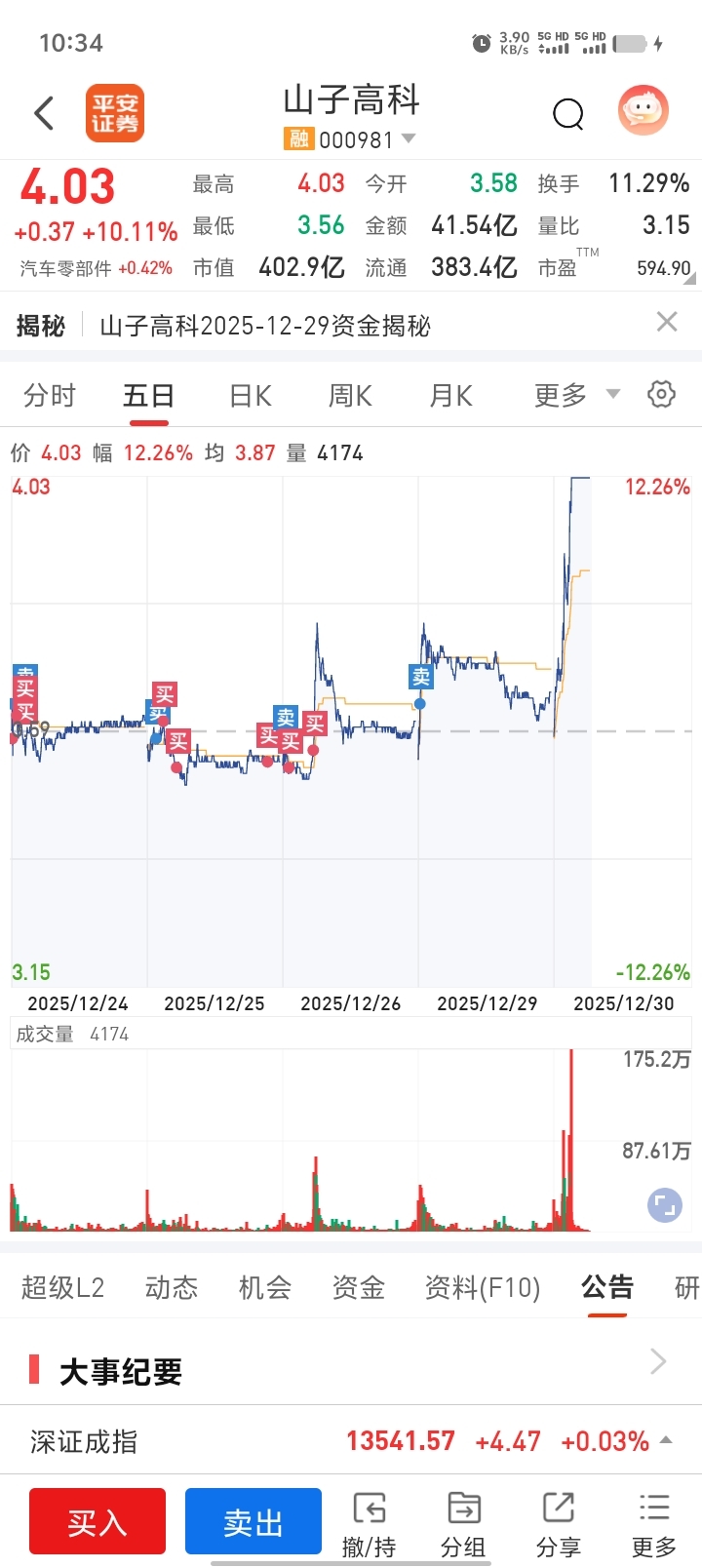 $山子高科(SZ000981)$ 想着今天接回家,