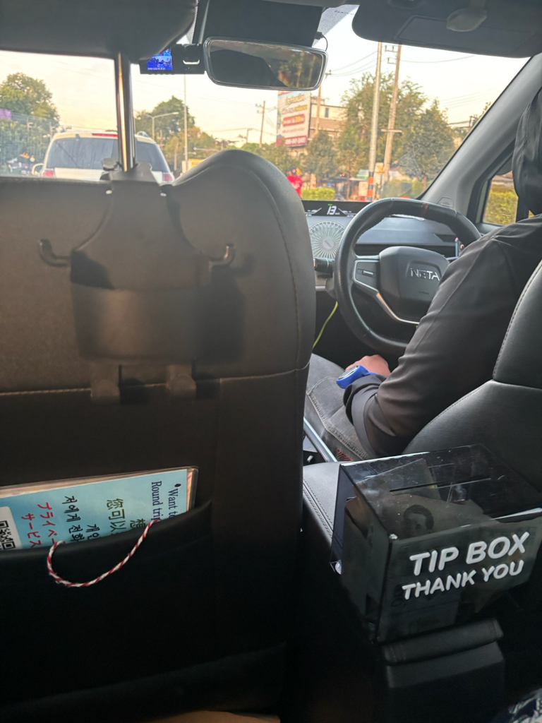 刚到清迈机场,用软件Grab打车就打到了一辆哪吒,说明哪吒在泰国还是可以的,车真