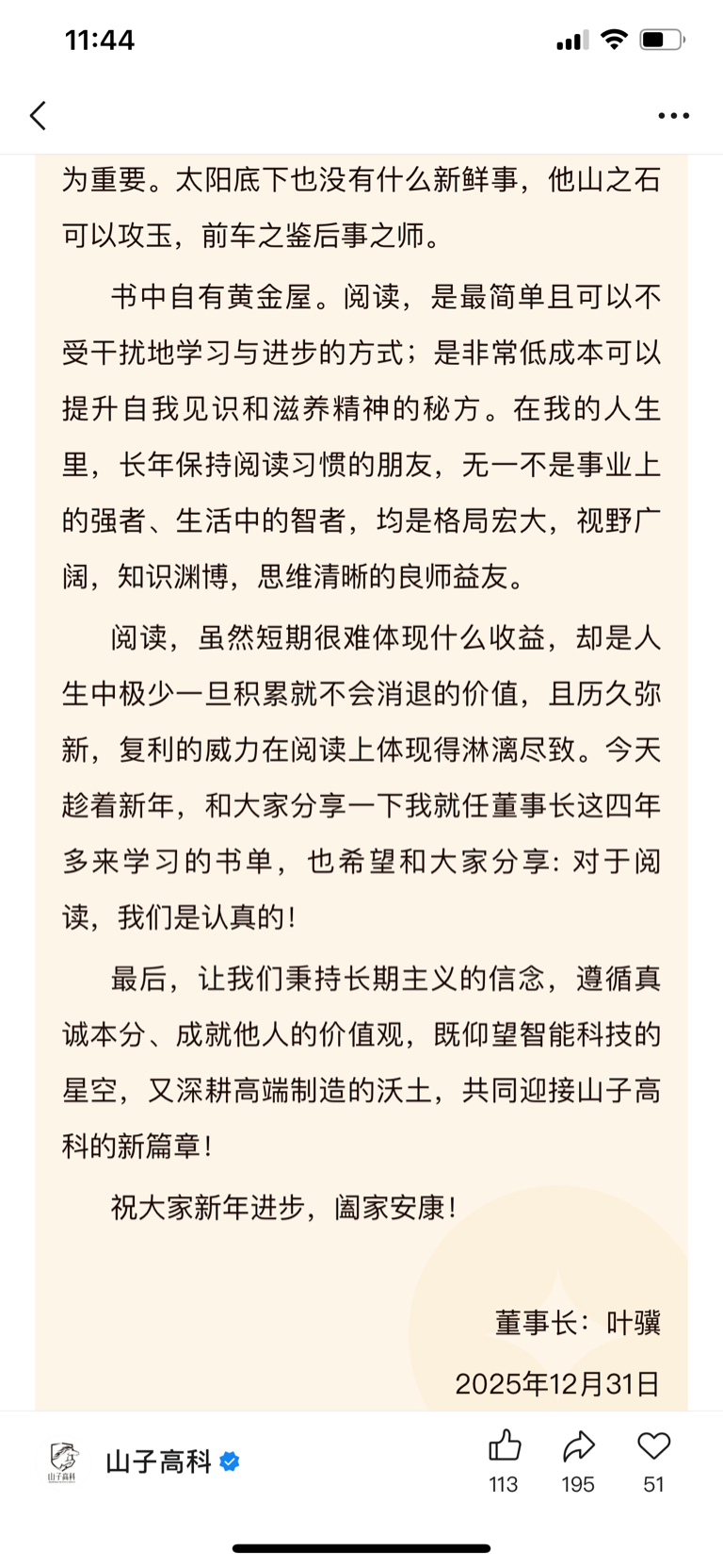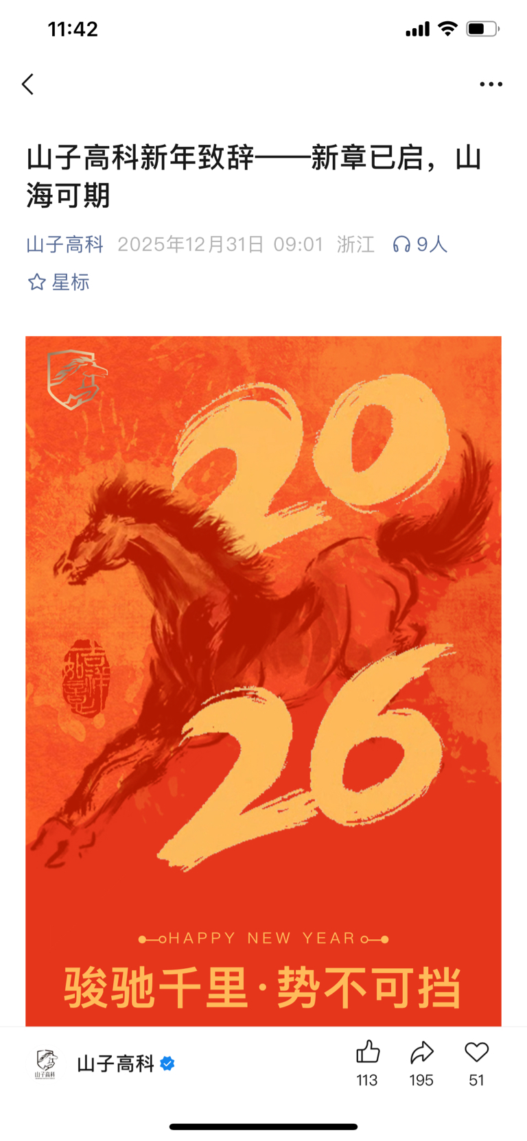 叶骥董事长新年致辞:新章己启,山海可期,相信2026将会是山子高科真正的展翅之年