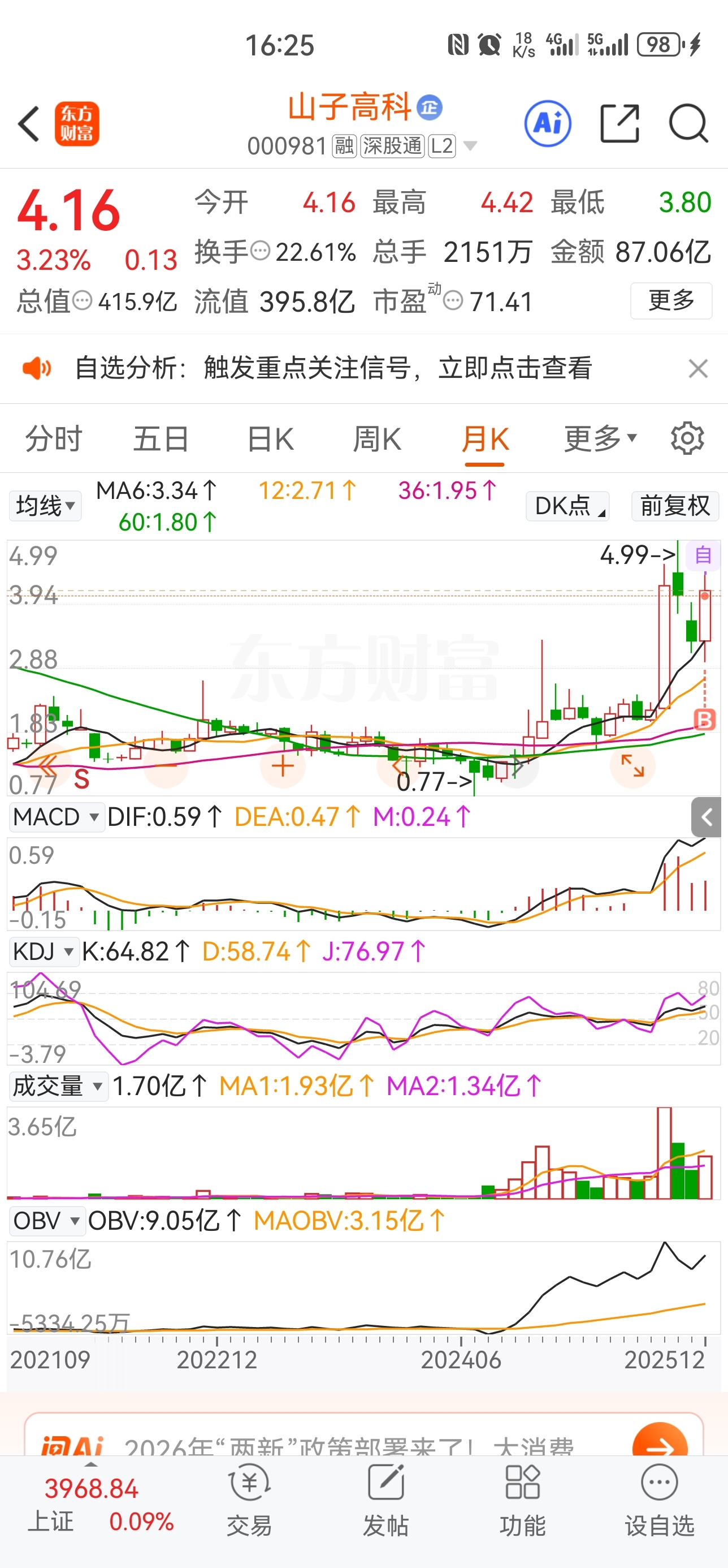 纯看K线的话,周线和月线都还可以。