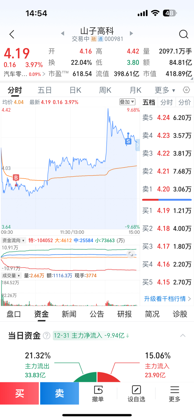 $山子高科(SZ000981)$ 今天T成本价3.2了