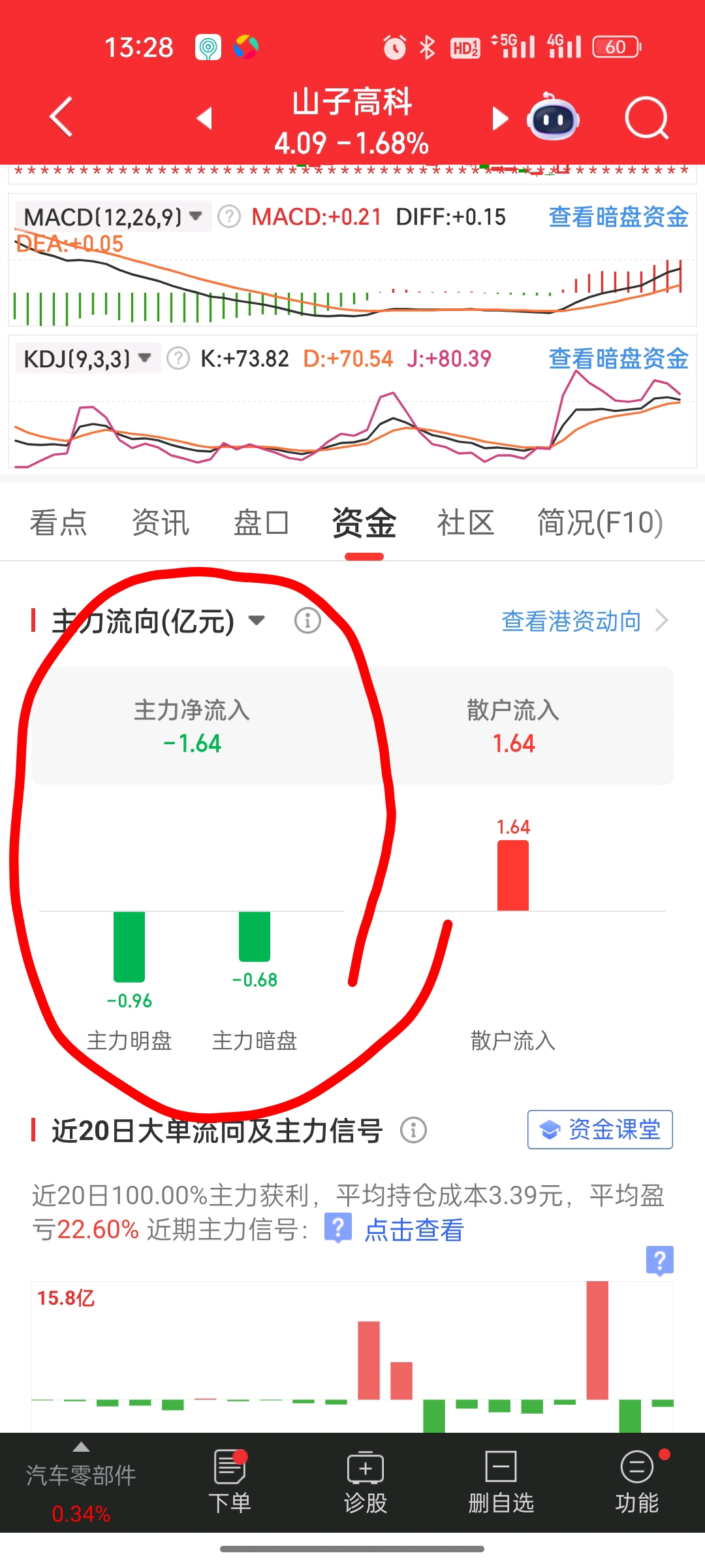 $山子高科(SZ000981)$ 主力暗盘流出,散户流入不少。