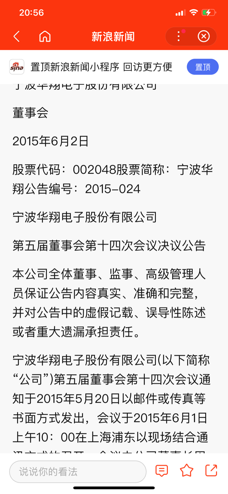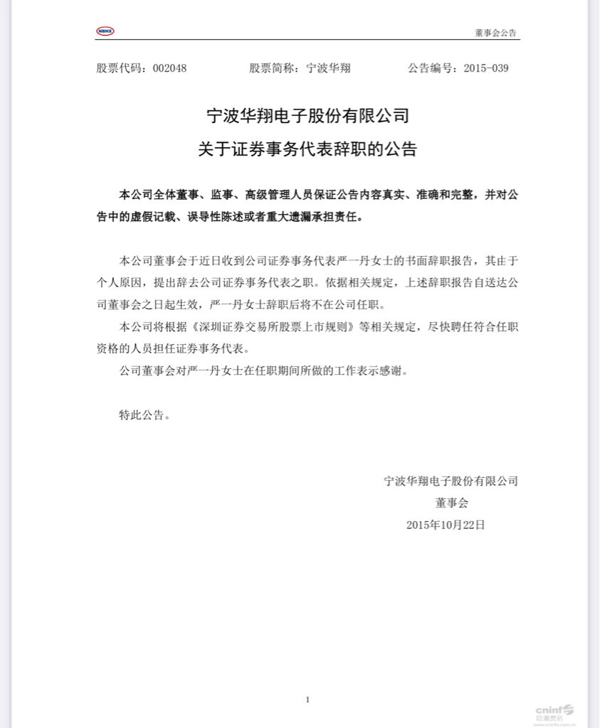 2015年6月2日-2015年10月 22日任宁波华翔电
