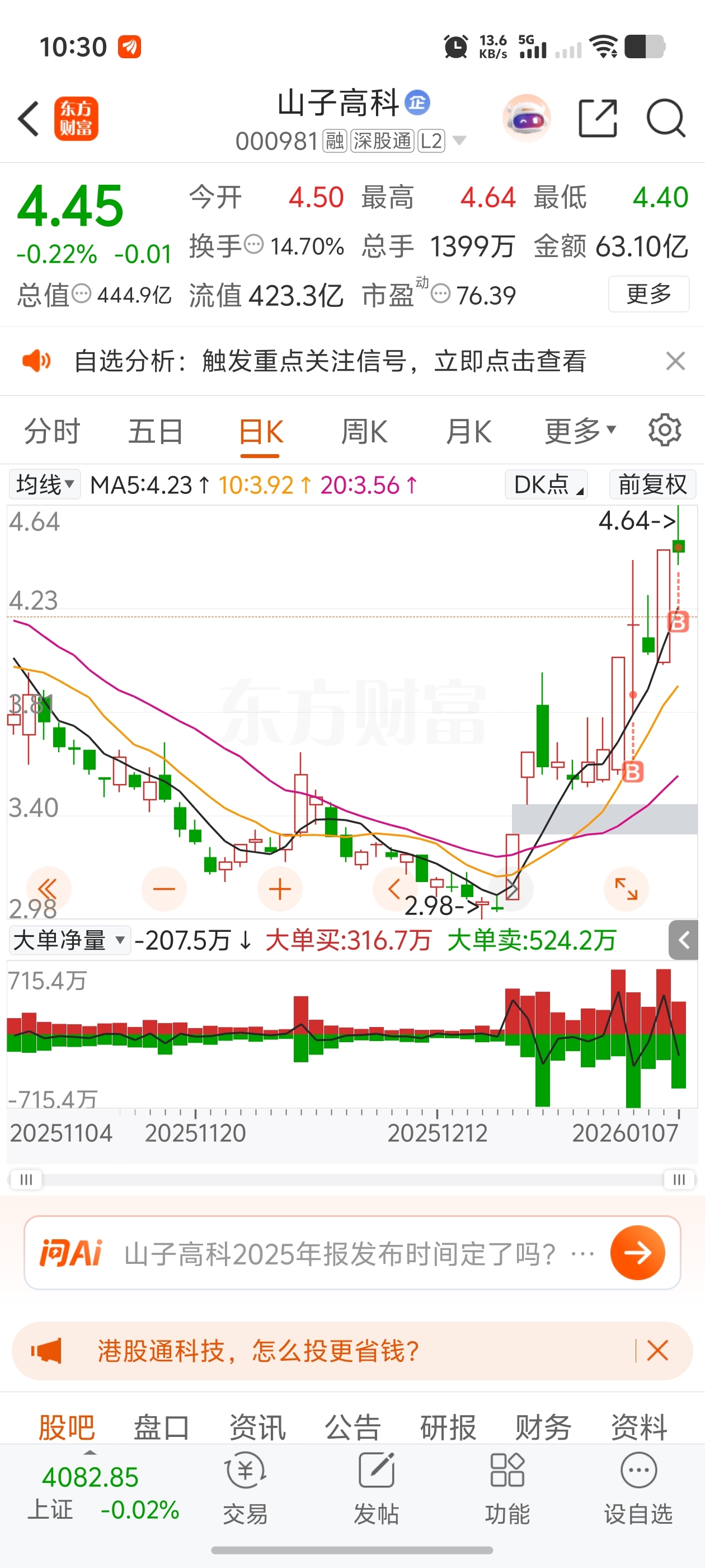 $山子高科(SZ000981)$ 我加仓了,大家看着办吧,哈哈