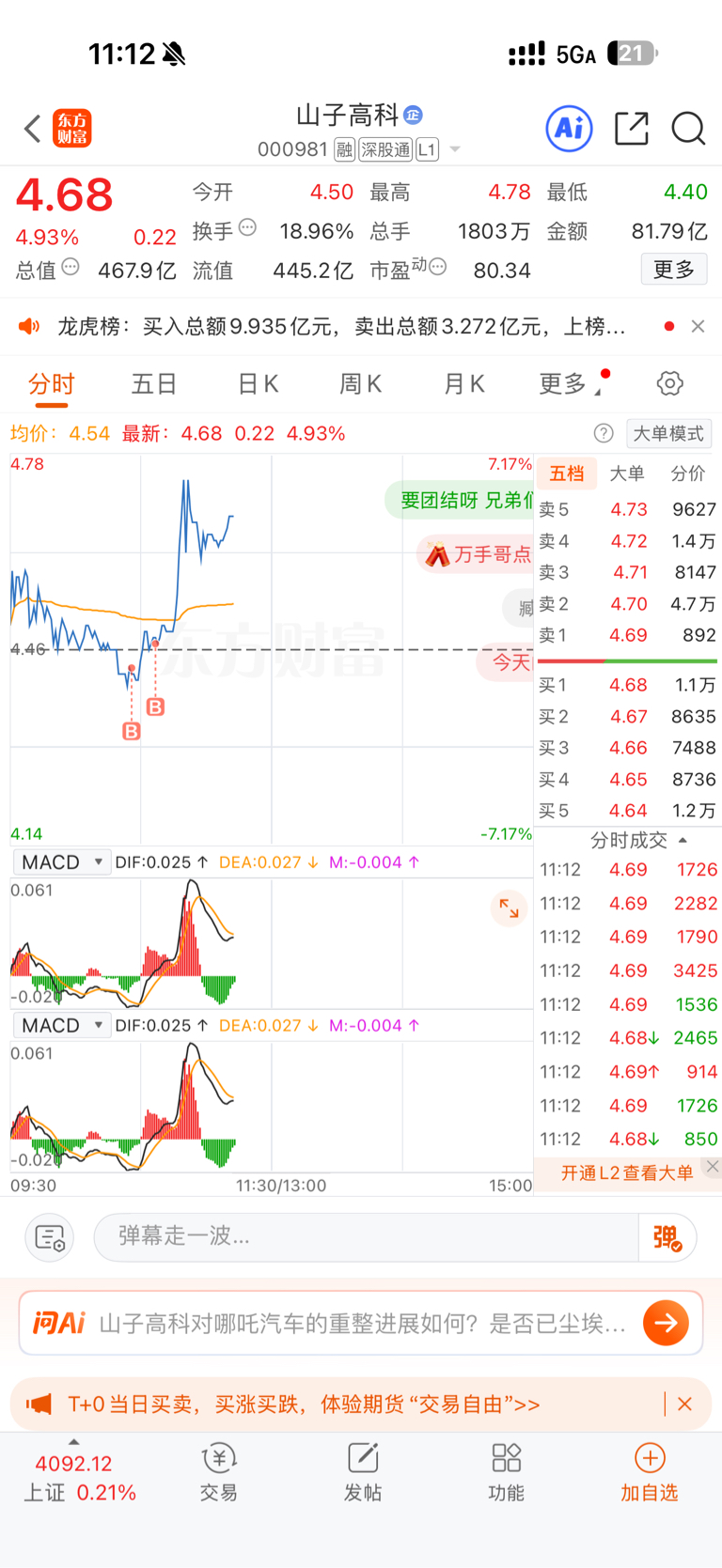 $山子高科(SZ000981)$ 为什么你们4.7的不慌,我4.43慌死了。感觉站岗几率大啊!