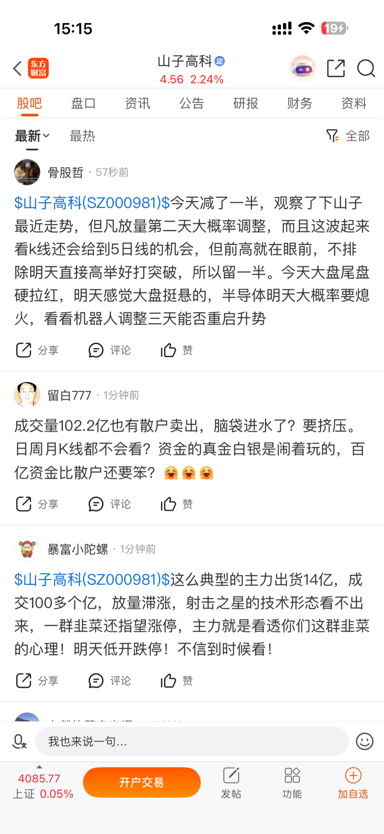 $山子高科(SZ000981)$ 一眼看到三位大师