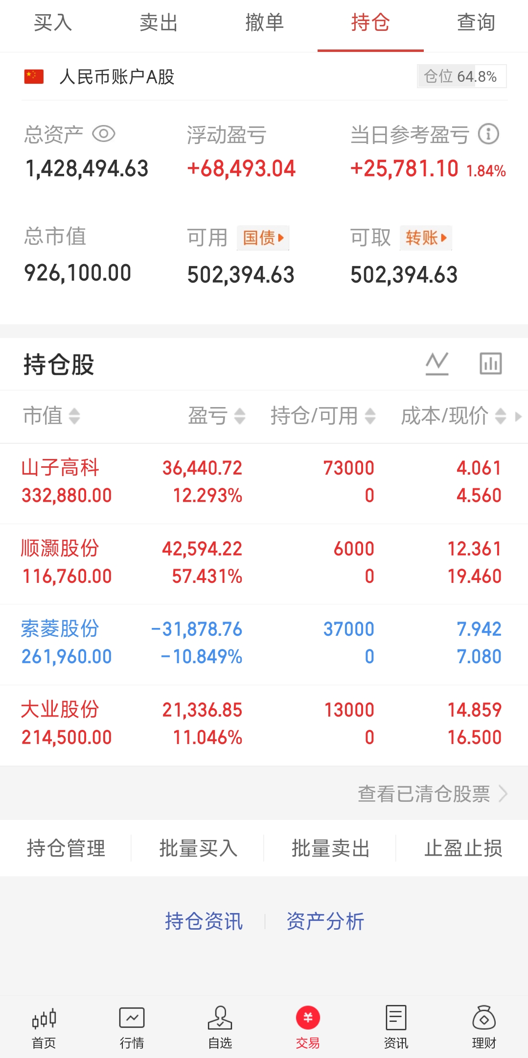 2、顺灏股份:再次T一波,今日暂留底仓。