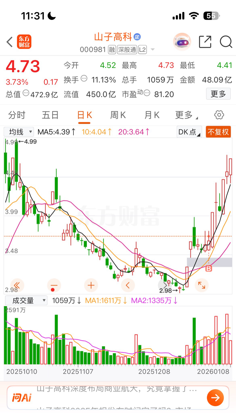 $山子高科(SZ000981)$ 延五日线上攻,脱离五日线就洗两天韭菜,T都不做避免被甩下车,每天笑看韭菜在发帖唱空,你们不追高亏钱下车我赚谁的钱?