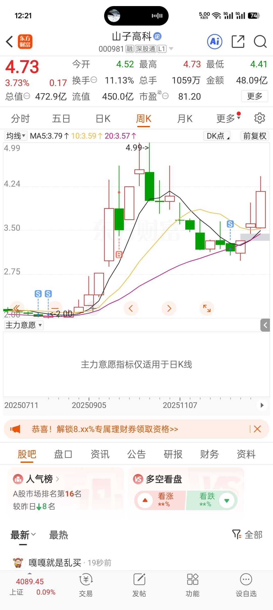 $山子高科(SZ000981)$ 每次都能赶上好时候,,,真服了自己,买啥啥跌,卖啥啥涨