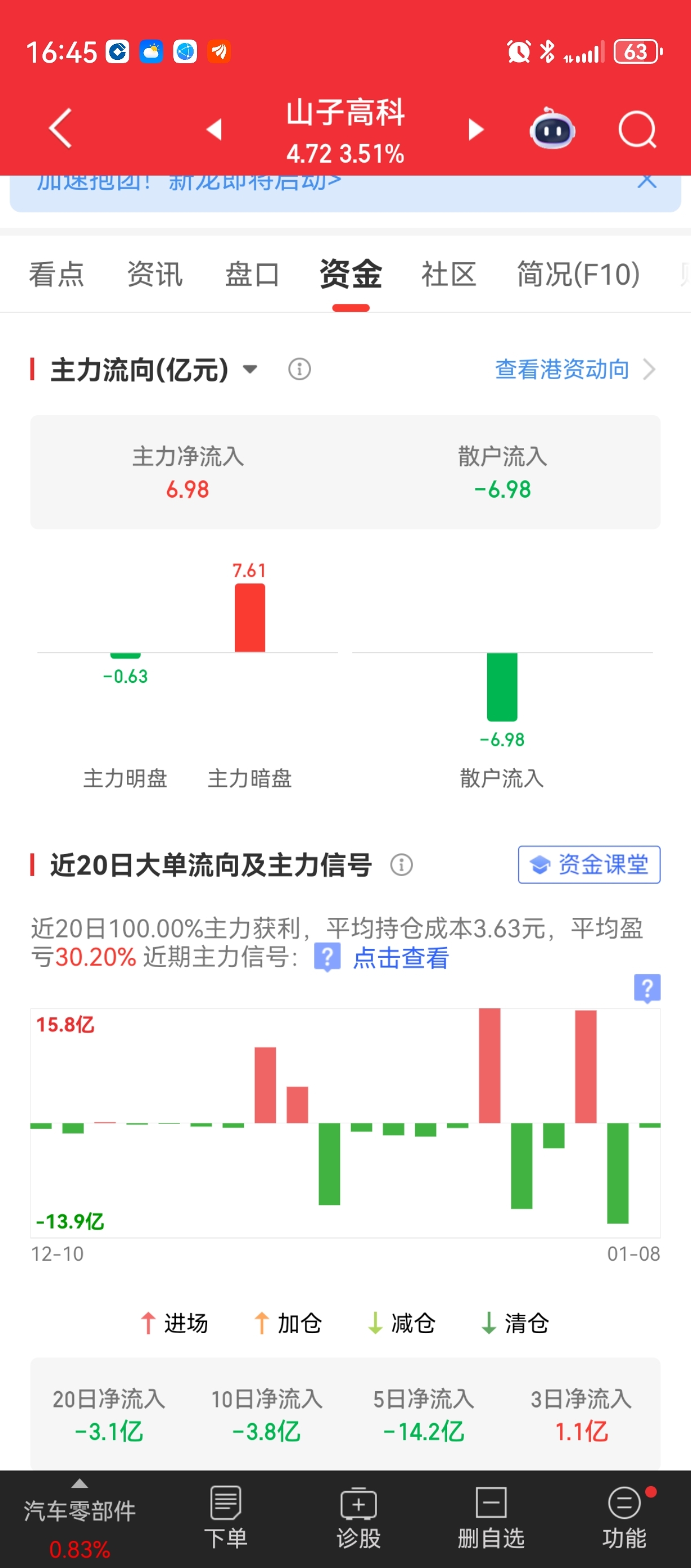 $山子高科(SZ000981)$ 家人们 不要怕 4.45今天全仓8W股冲进来了