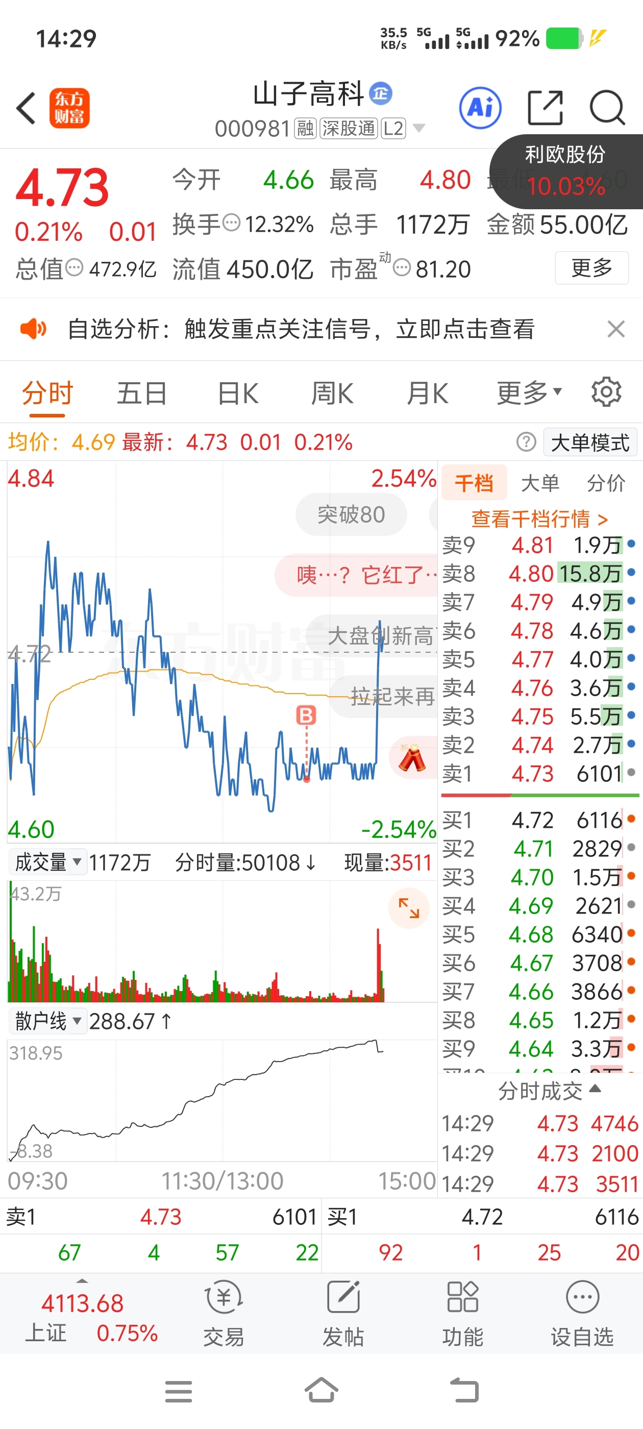 $山子高科(SZ000981)$ 我买了一丢丢,买着玩的!哎呀,后悔买少了