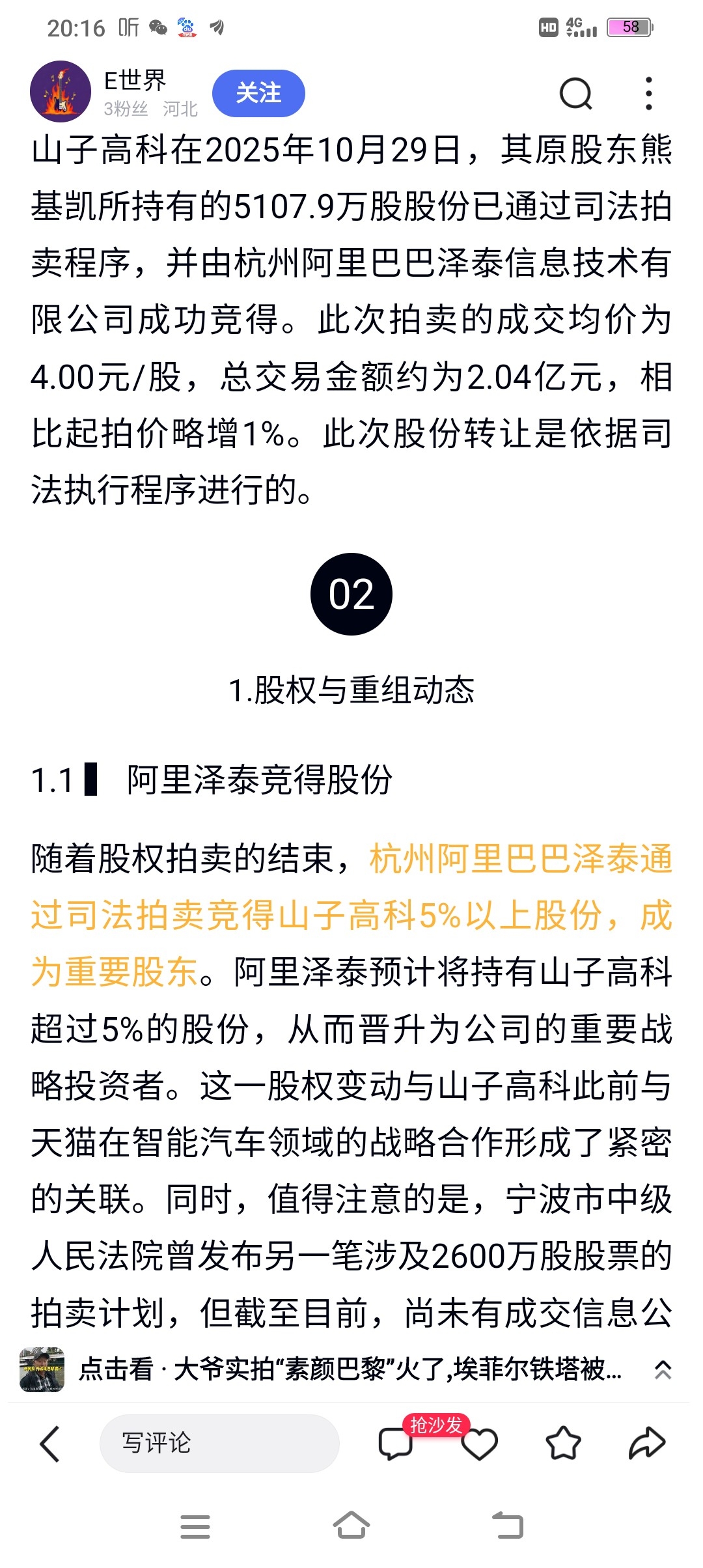 $山子高科(SZ000981)$ 预计超过百分之五是不是这次拍卖之后就超过了