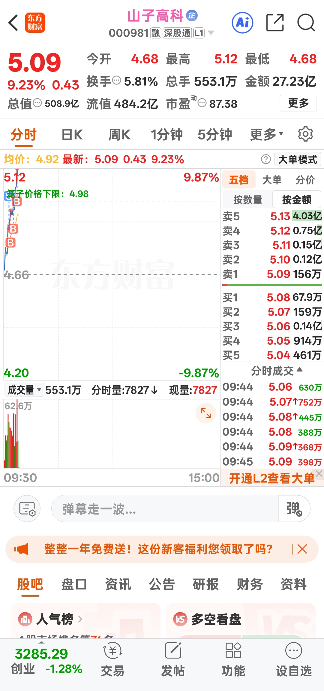 $山子高科(SZ000981)$ 这要是不上板就尴尬啦