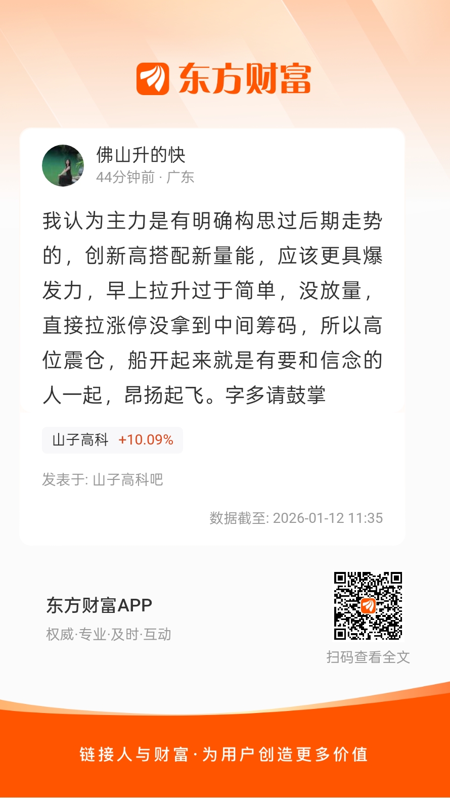 温馨提示: 1.根据《证券法》规定,禁止编造、传播虚假信息或者误导性信息,扰乱证券市场;2.用户在本社区发表的所有资料、言论等仅代表个人观点,与本网站立场无关,不对您构成任何投资建议。用户应基于自己的独立判断,自行决定证券投资并承担相应风险。《东方财富社区管理规定》