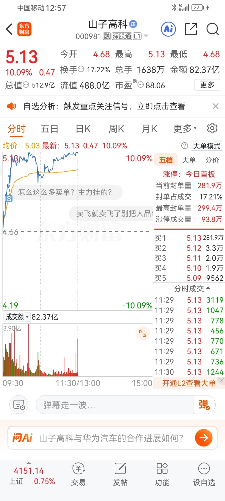 $山子高科(SZ000981)$ 好像被洗了