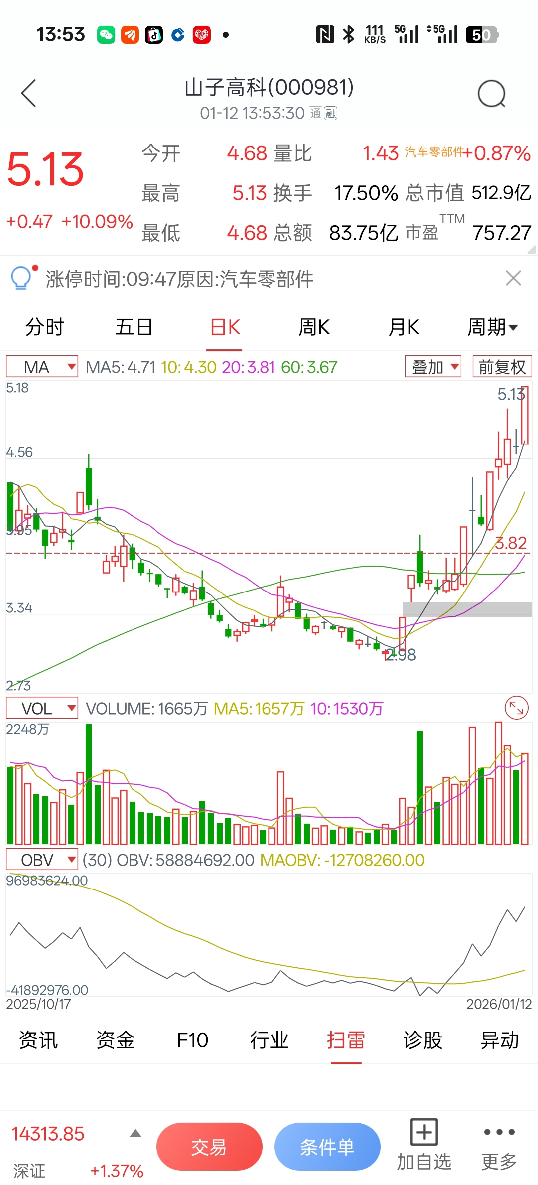 $山子高科(SZ000981)$ 买了这么久一直拿着,就是不知道炒的啥,成本3.82,只是因为量价关系好,看着图形真漂亮
