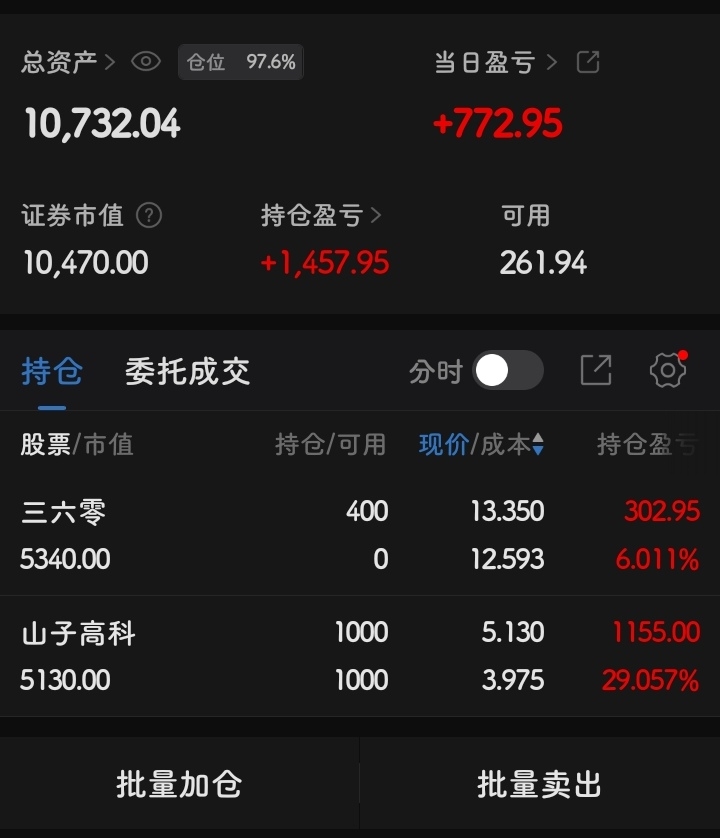 一万开启漫长回本路~#炒股日记# $山子高科(SZ000981)$ $三六零(SH601360)$