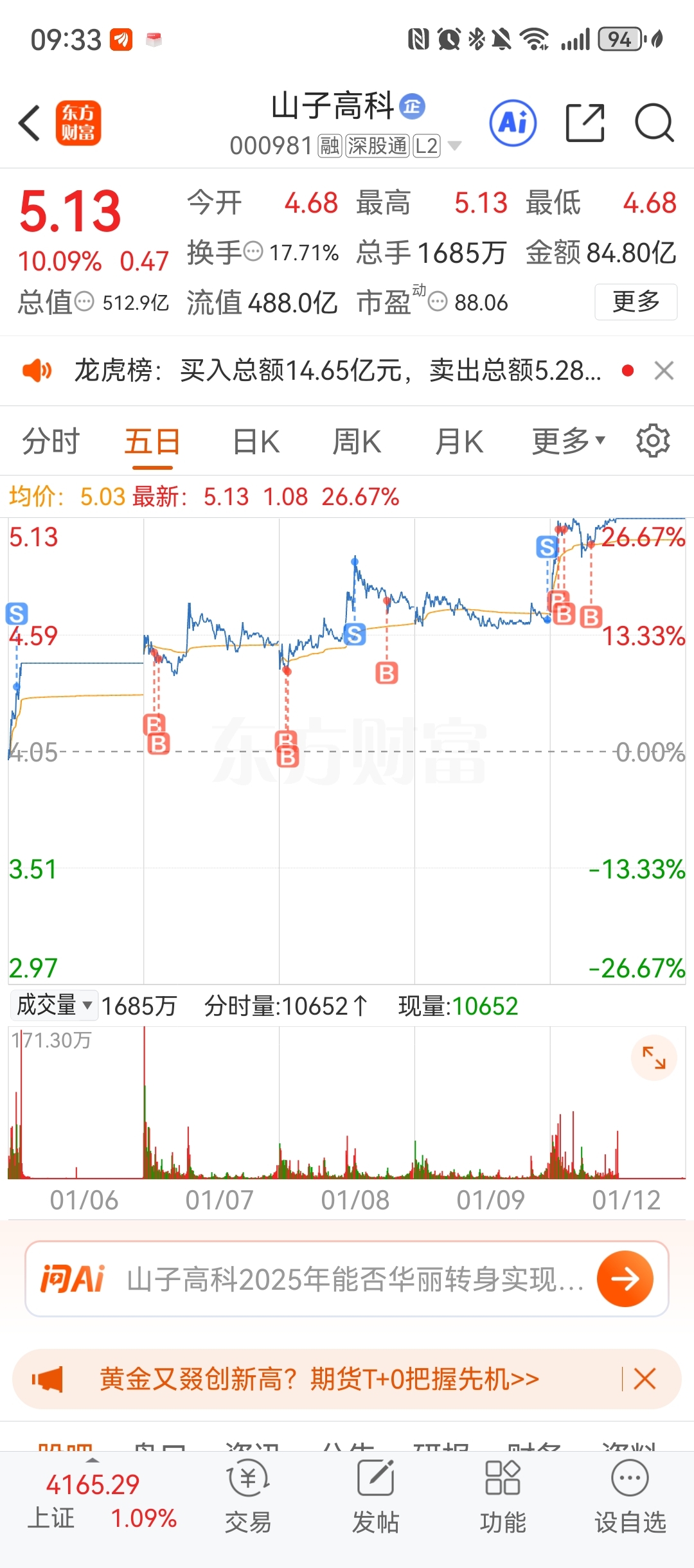 $山子高科(SZ000981)$ 老老实实拿着不好,非要做T