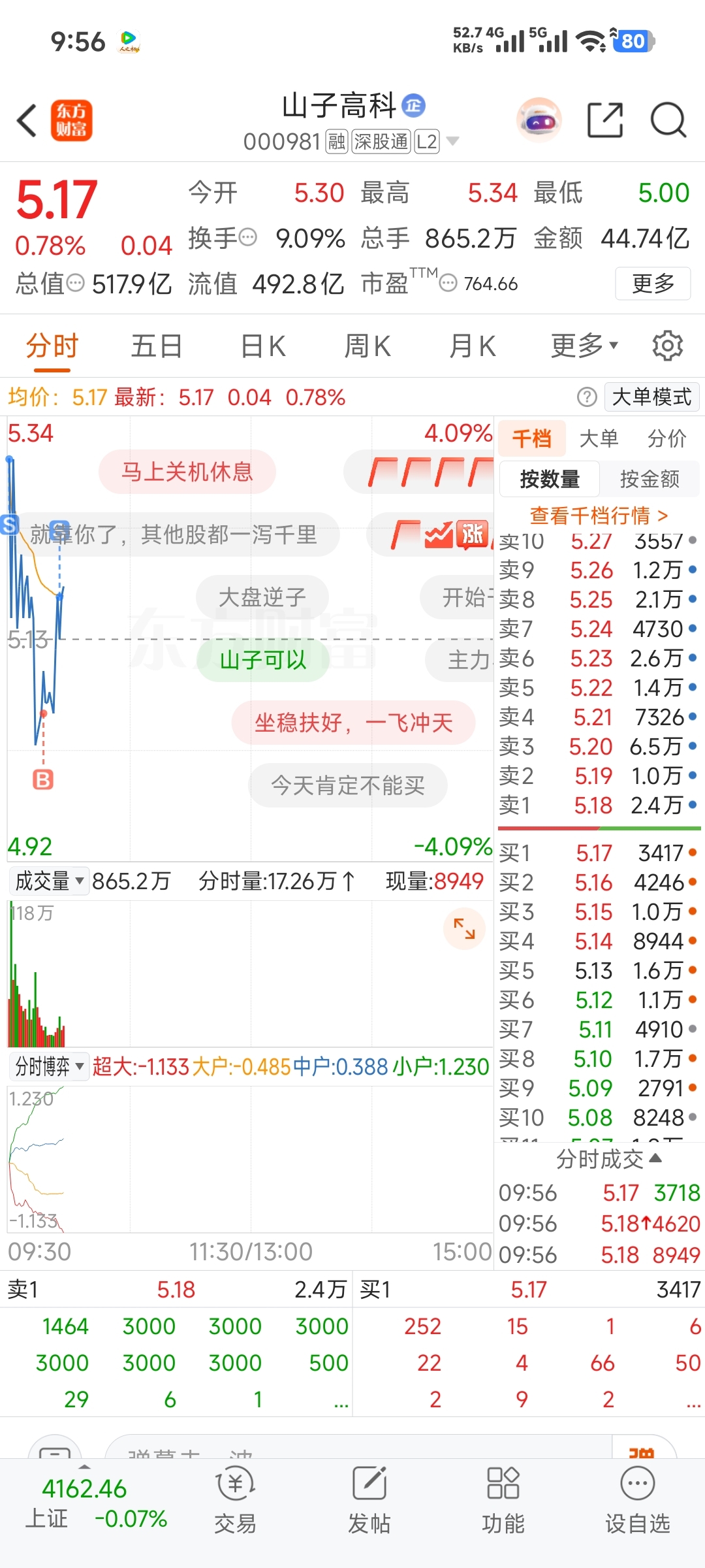 $山子高科(SZ000981)$ 山子高科的朋友们,大家上午好!今天是绝佳做t的机会啊,有很多伙伴问我,买入卖出的时机,这个真的只能意会不能言传啊,等我要买的时候我再发个帖子,时机早就已经过了。