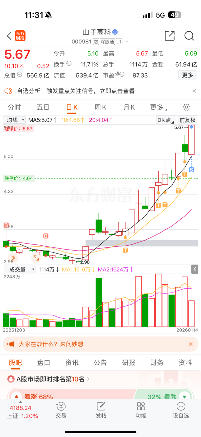 虽然我清仓了,我还是看好这只票,希望留下的兄弟继续发财,你心中的价位是多少呢?