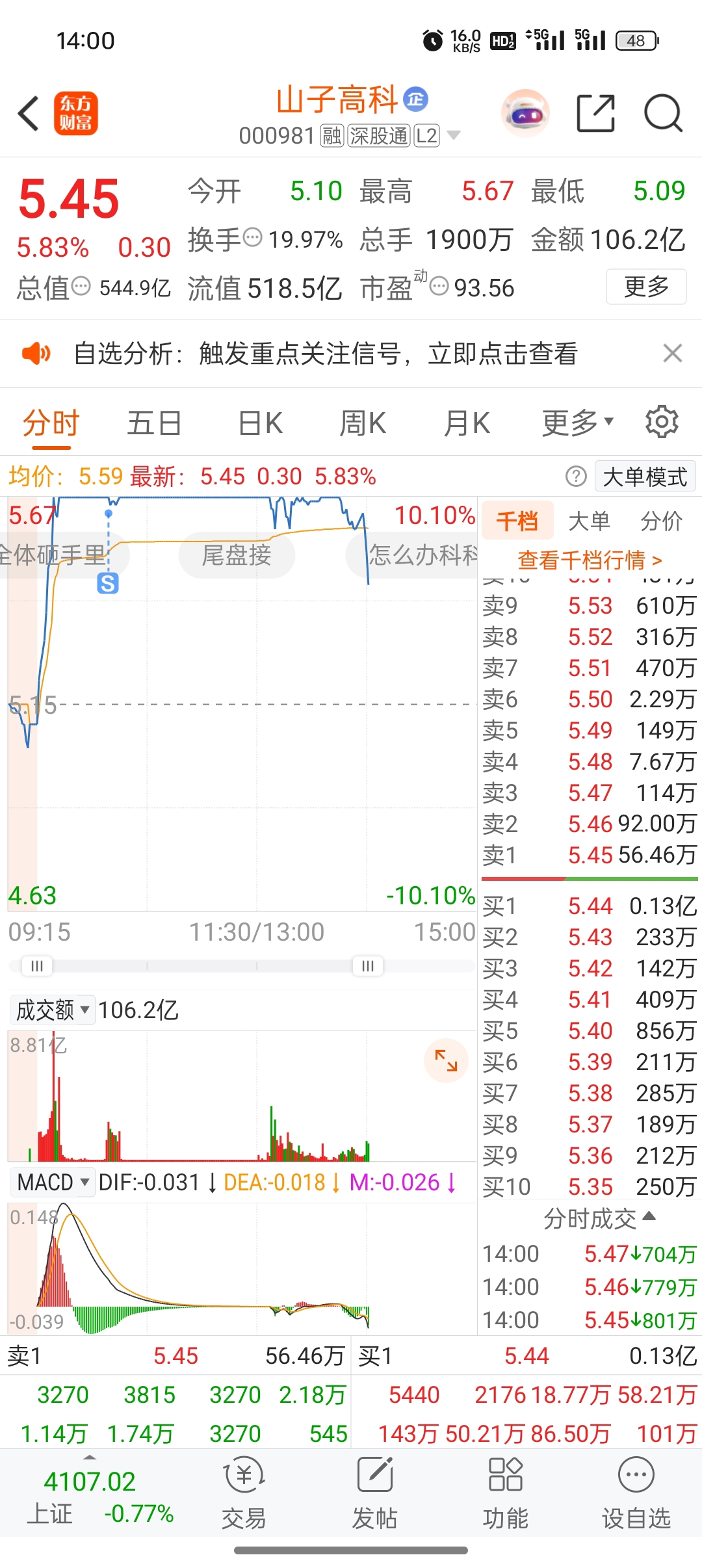 $山子高科(SZ000981)$ 还好还好,早上跑的