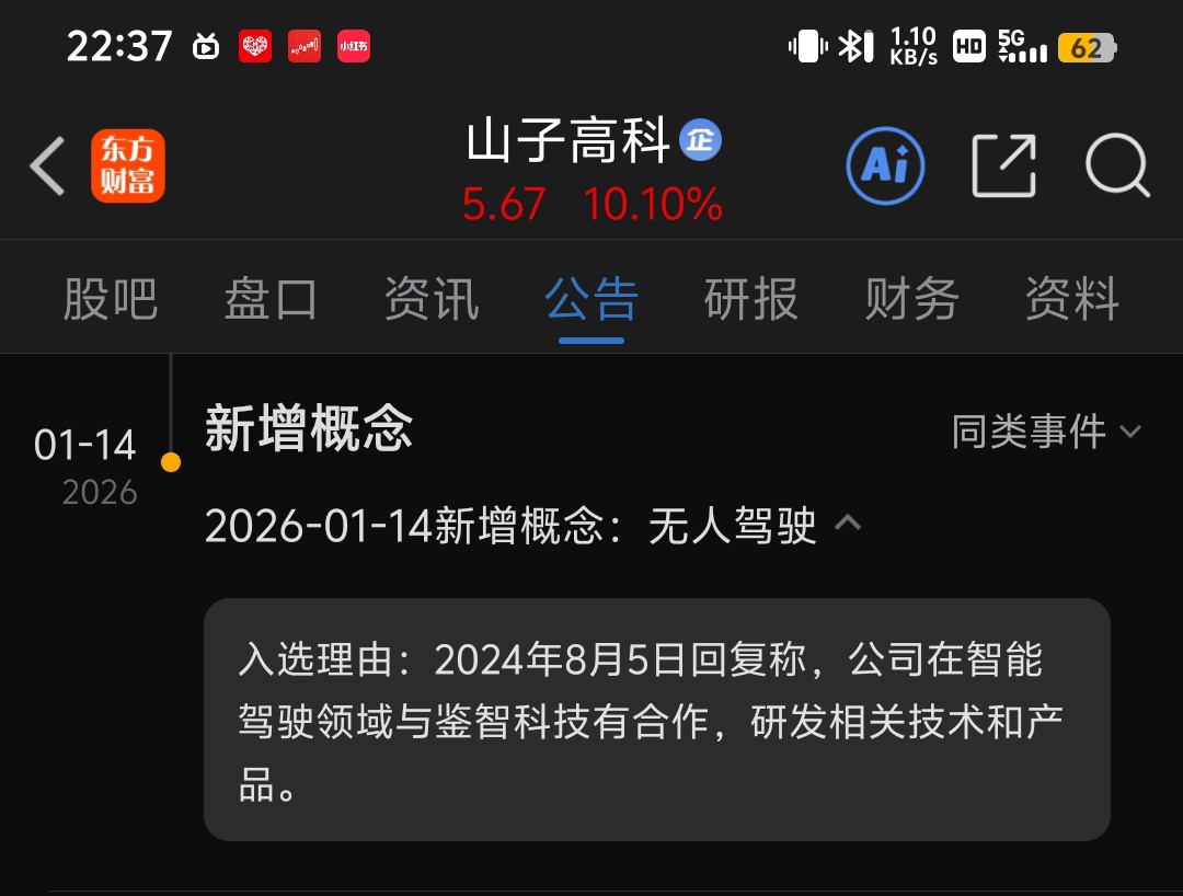 $山子高科(SZ000981)$ 山子高科段位升级,新增概念:无人驾驶。