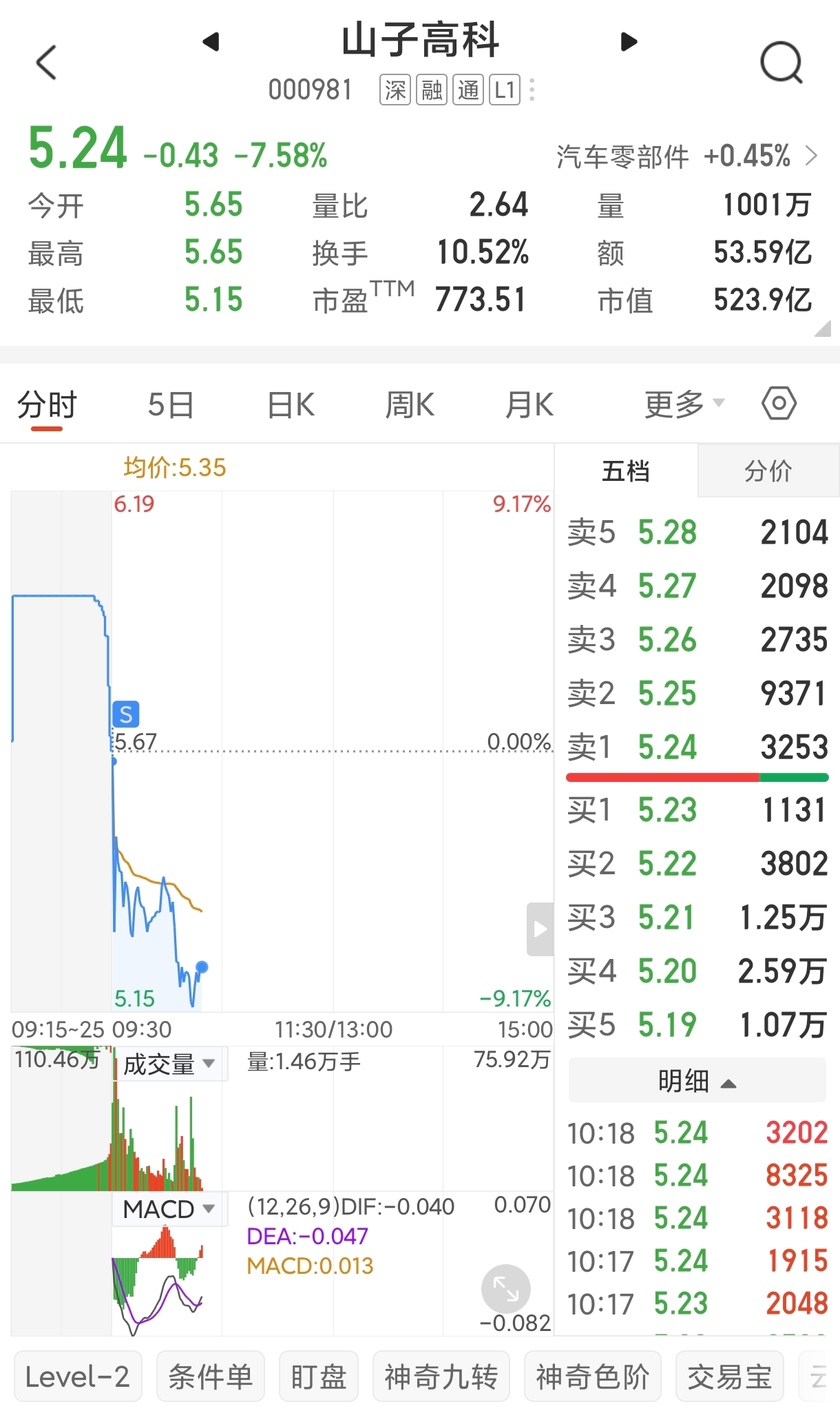 $山子高科(SZ000981)$ 我先跑了