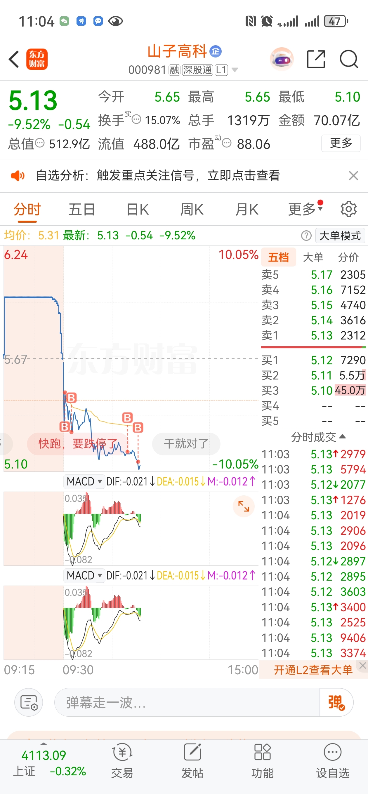 $山子高科(SZ000981)$ 我我就看能跌成啥