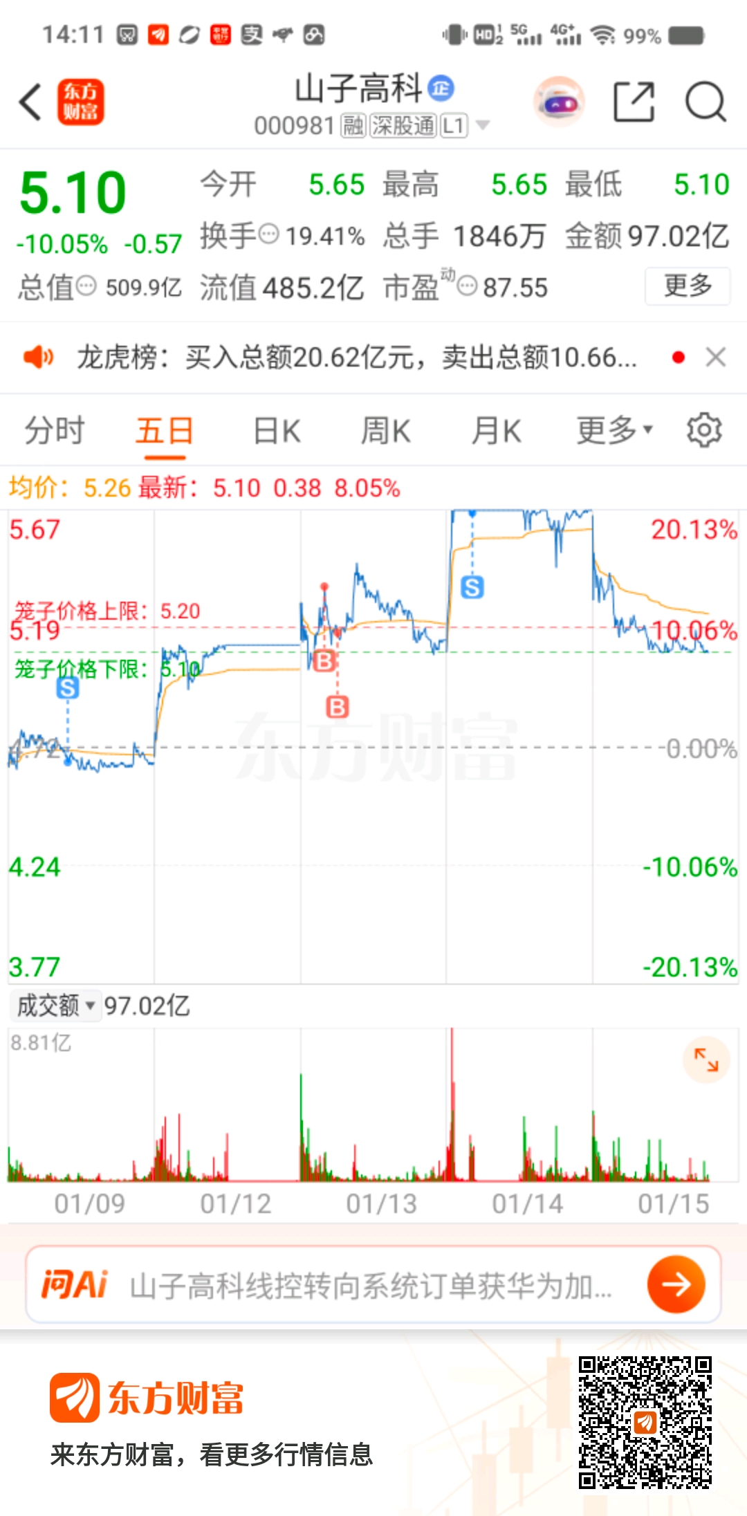 $山子高科(SZ000981)$ 幸亏昨天走了