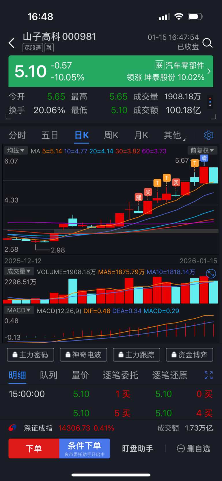 $山子高科(SZ000981)$ 感谢主力,明天我再回来