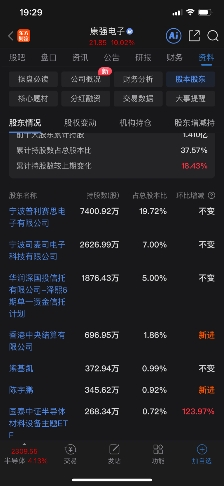 康强电子的控股股东背后山子高科100%控股