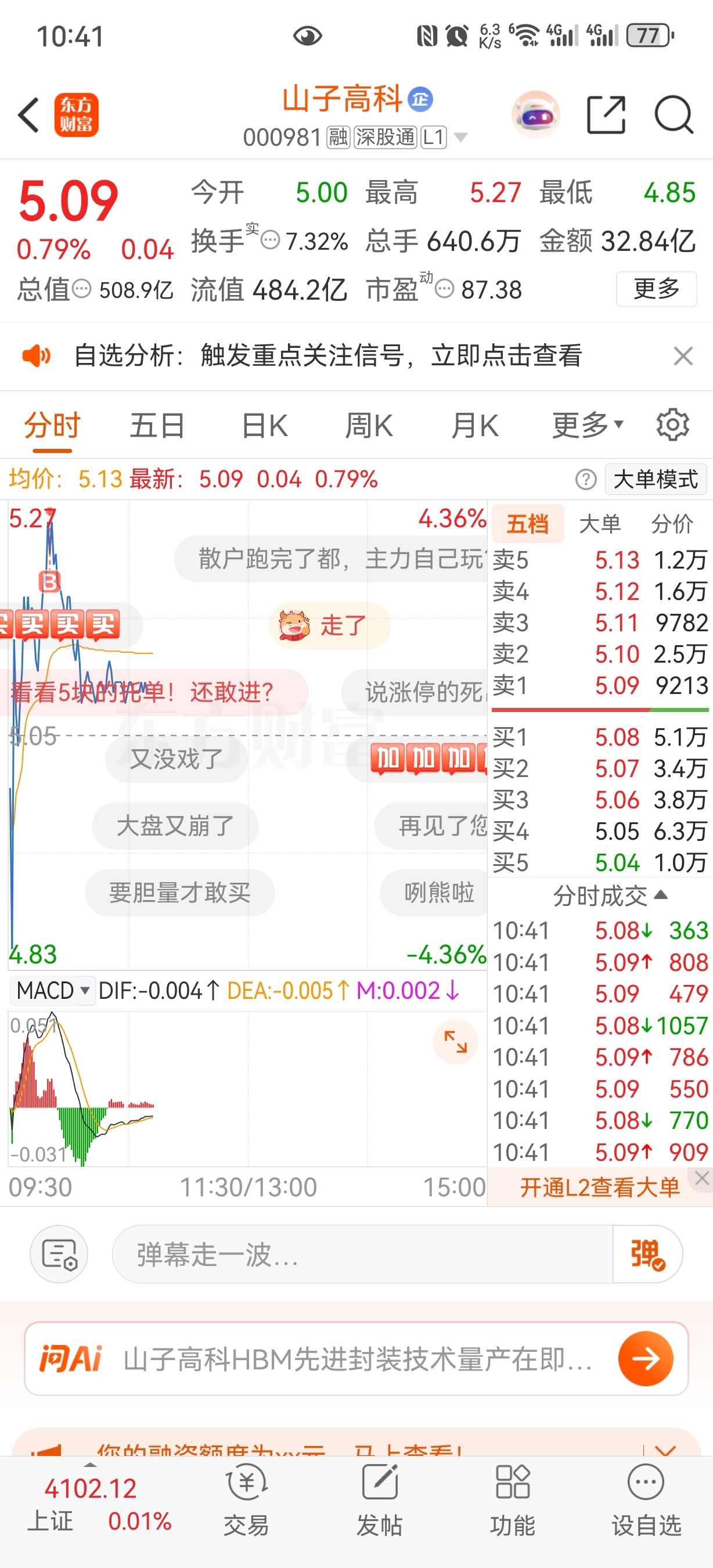 $山子高科(SZ000981)$ 救救我主力