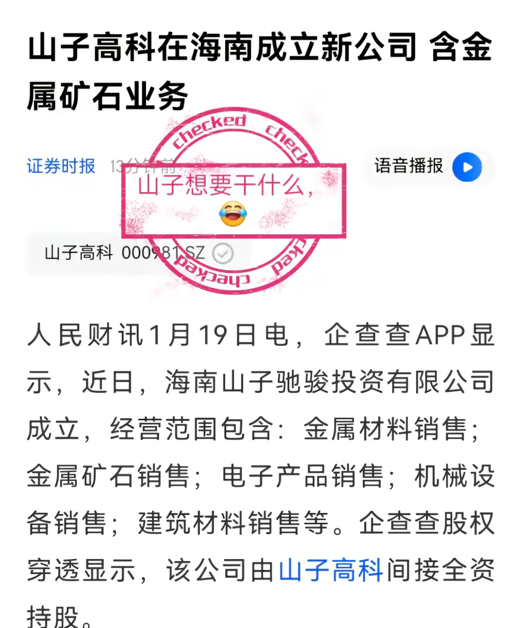 $山子高科(SZ000981)$ 刚刷到的