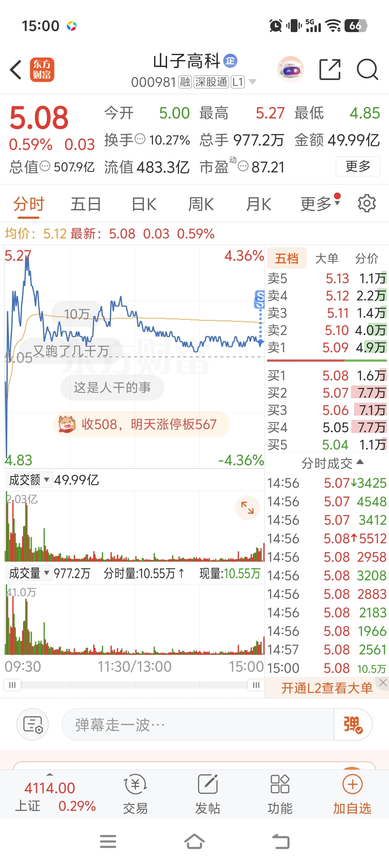 $山子高科(SZ000981)$ 走了,你们发财