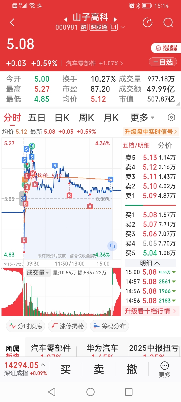 $山子高科(SZ000981)$ 今天一顿操作,只做了4分钱差价