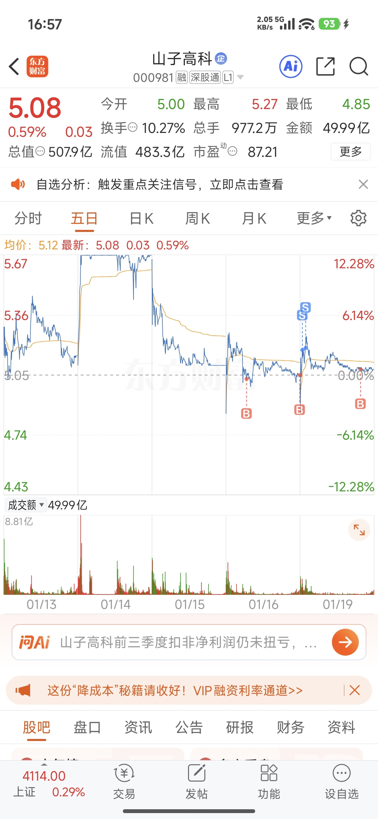 $山子高科(SZ000981)$ 这个股票好啊,超短线能赚钱。