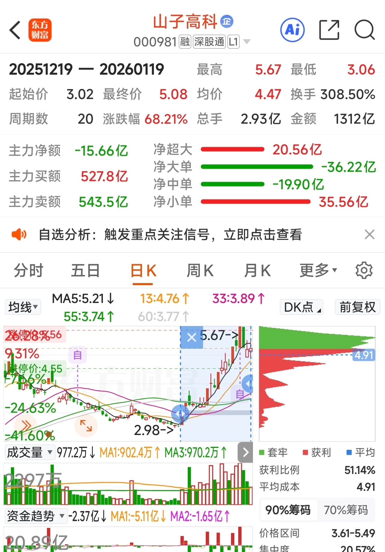 20日内,山子升幅情况68.21%。