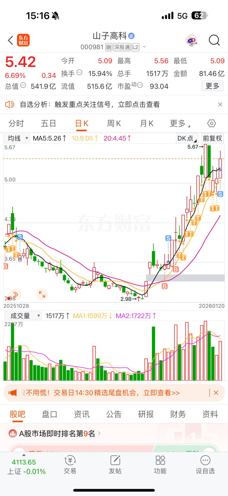 $山子高科(SZ000981)$ 今天跑了,不知道对错